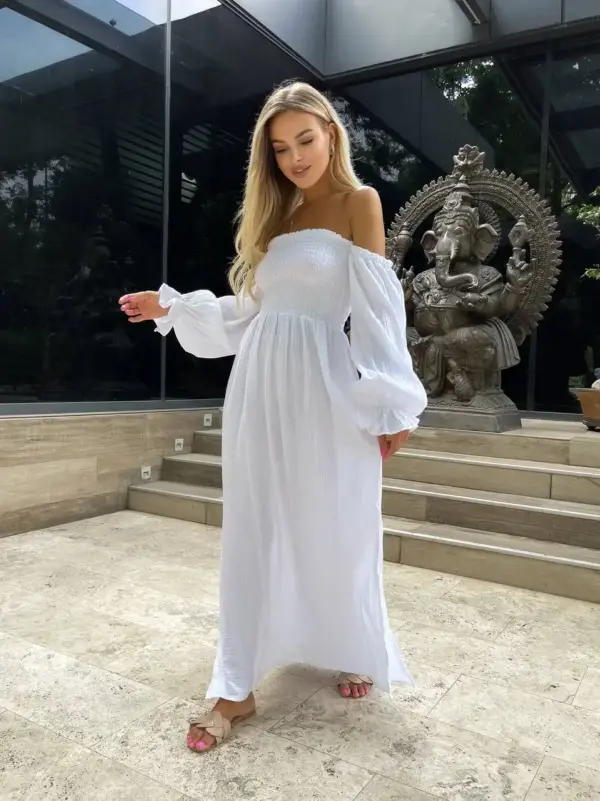 Довга муслінова сукня білого кольору – легкість, свіжість і елегантність