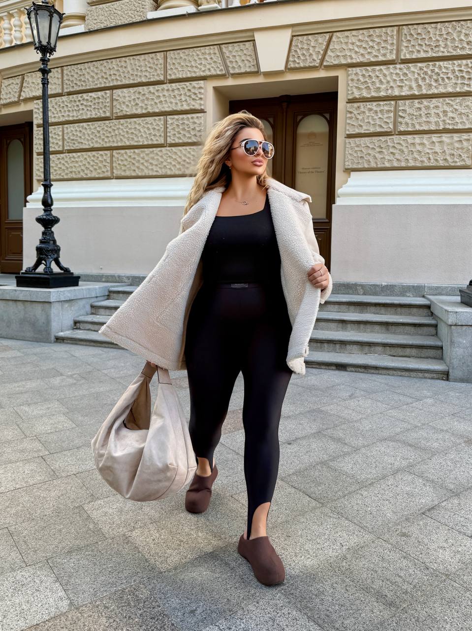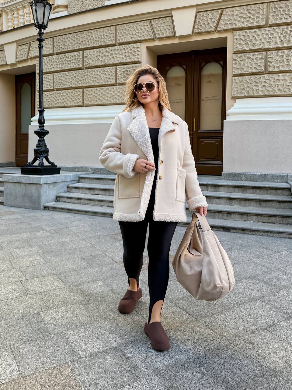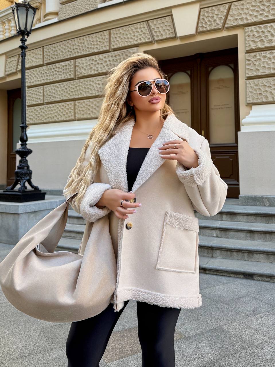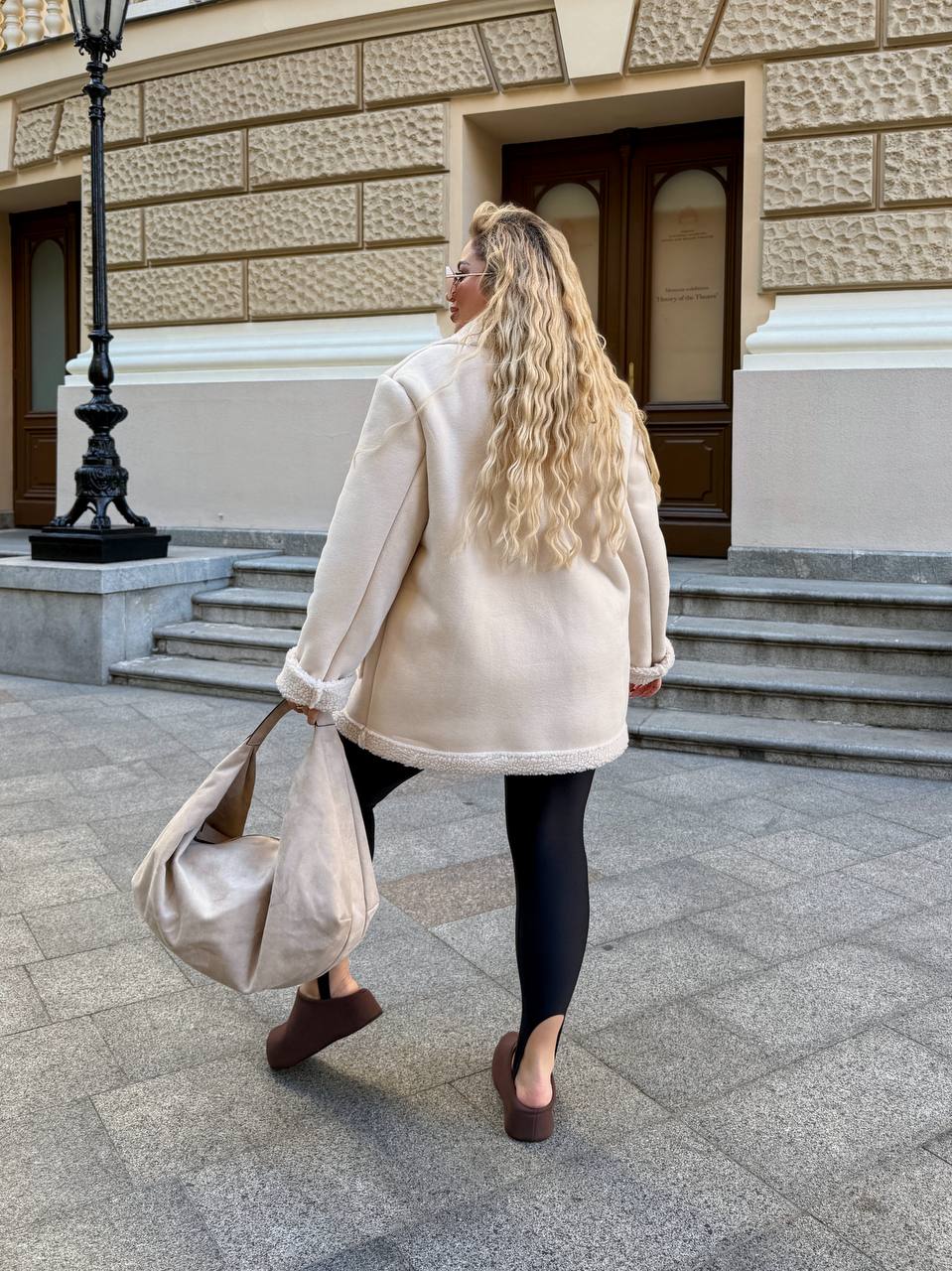 Додайте у свій гардероб жіночу дублянку у бежевому кольорі. Вона поєднує тепло, стиль та універсальність, стаючи ідеальним вибором для прохолодних днів.