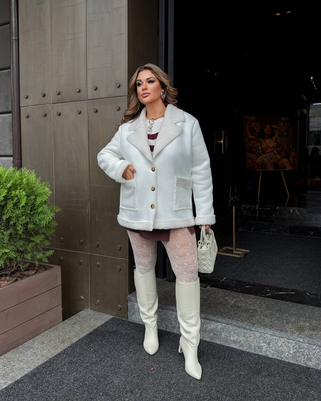 Дублянка жіноча біла великих розмірів — це ніжність, тепло й комфорт у кожній деталі. Світлий відтінок виглядає вишукано, а м’який матеріал із замшевим ефектом підкреслює жіночність.