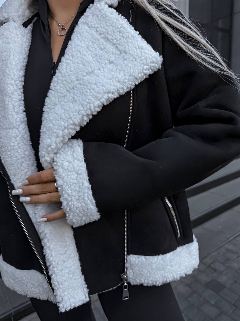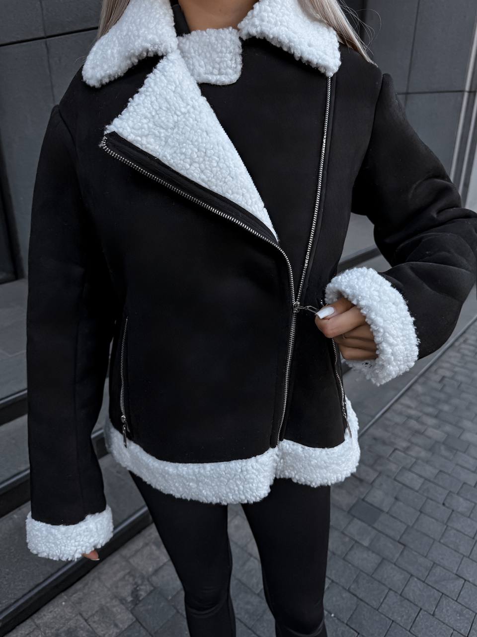 Придбайте жіночу дублянку у чорному кольорі за вигідною ціною. Це універсальний варіант для щоденних образів, який поєднує стиль, комфорт і практичність.