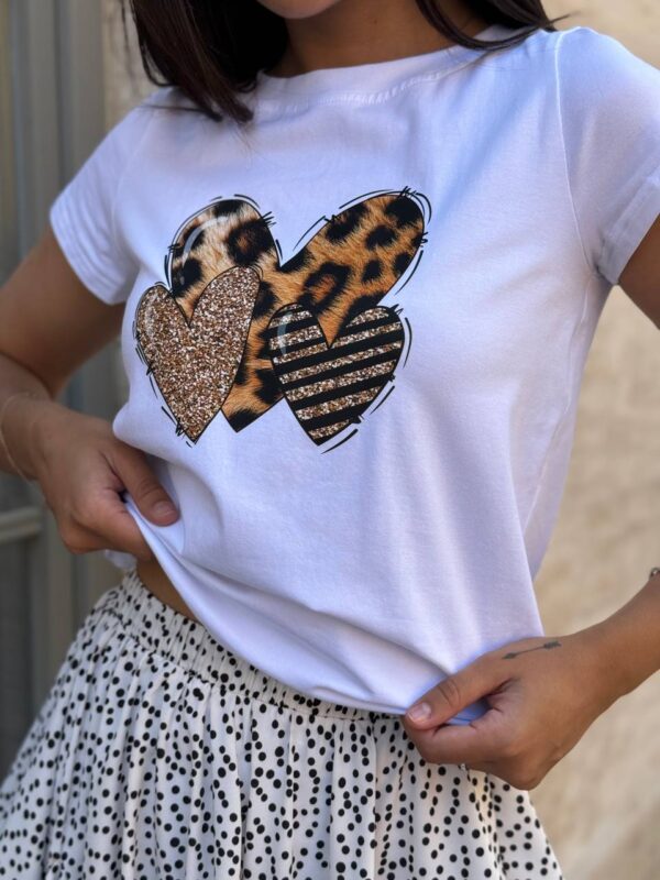 Футболка класична жіноча з принтом Леопардові сердця білого кольору