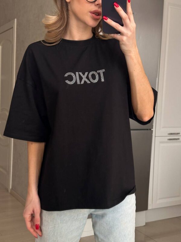 🛍 Де купити футболку жіночу оверсайз з принтом Toxic чорного кольору?