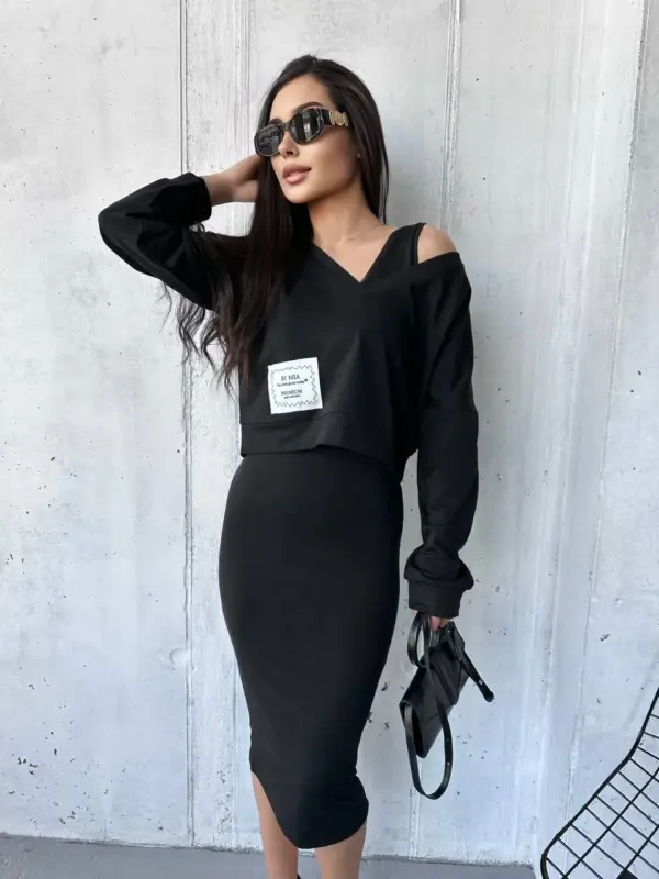 Костюм жіночий 2-в-1: кофта + сукня міді чорний – стиль та комфорт