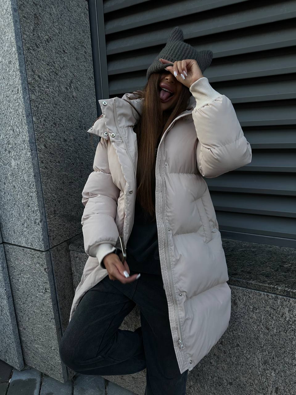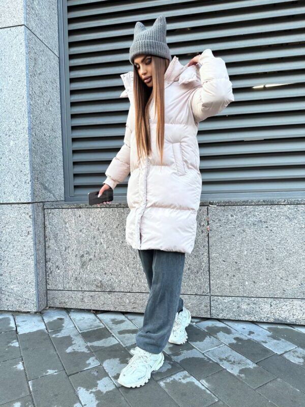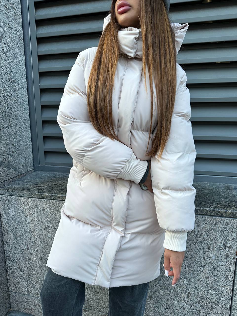 Ця модель — ідеальний вибір для міських прогулянок та подорожей у холодну пору року. Бежевий колір додає ніжності та витонченості образу, а подовжений фасон забезпечує максимальний комфорт і захист.