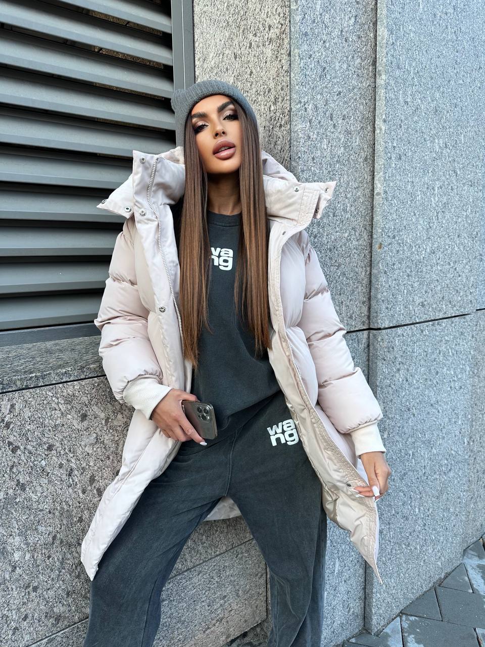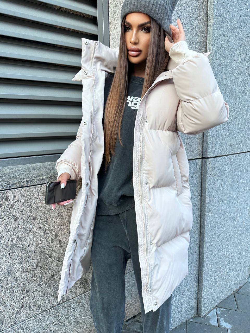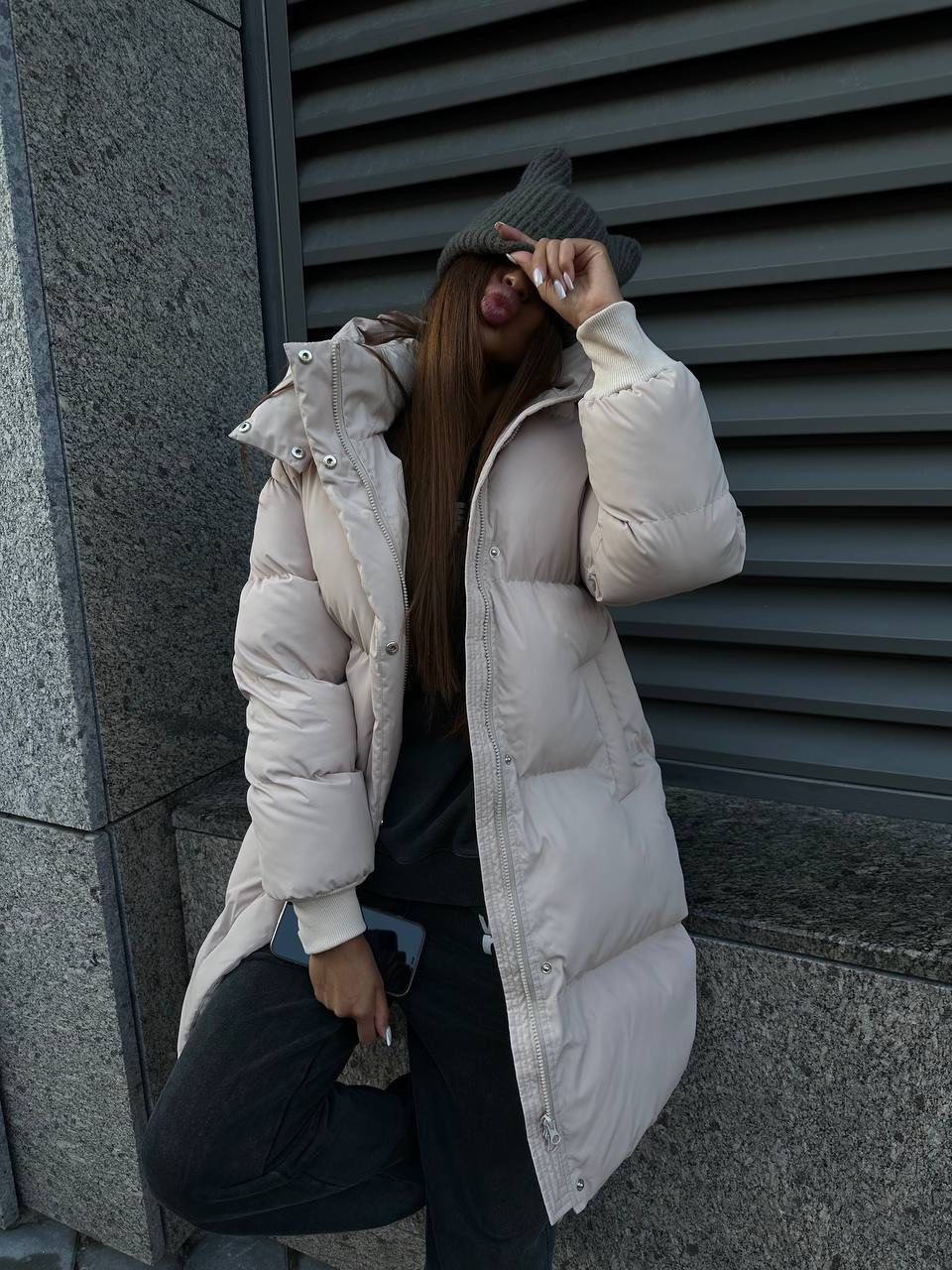 Ця модель — ідеальний вибір для міських прогулянок та подорожей у холодну пору року. Бежевий колір додає ніжності та витонченості образу, а подовжений фасон забезпечує максимальний комфорт і захист.