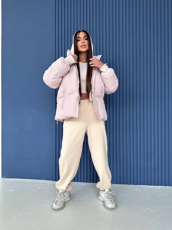 Пуховик жіночий короткий бежевого кольору 00324
