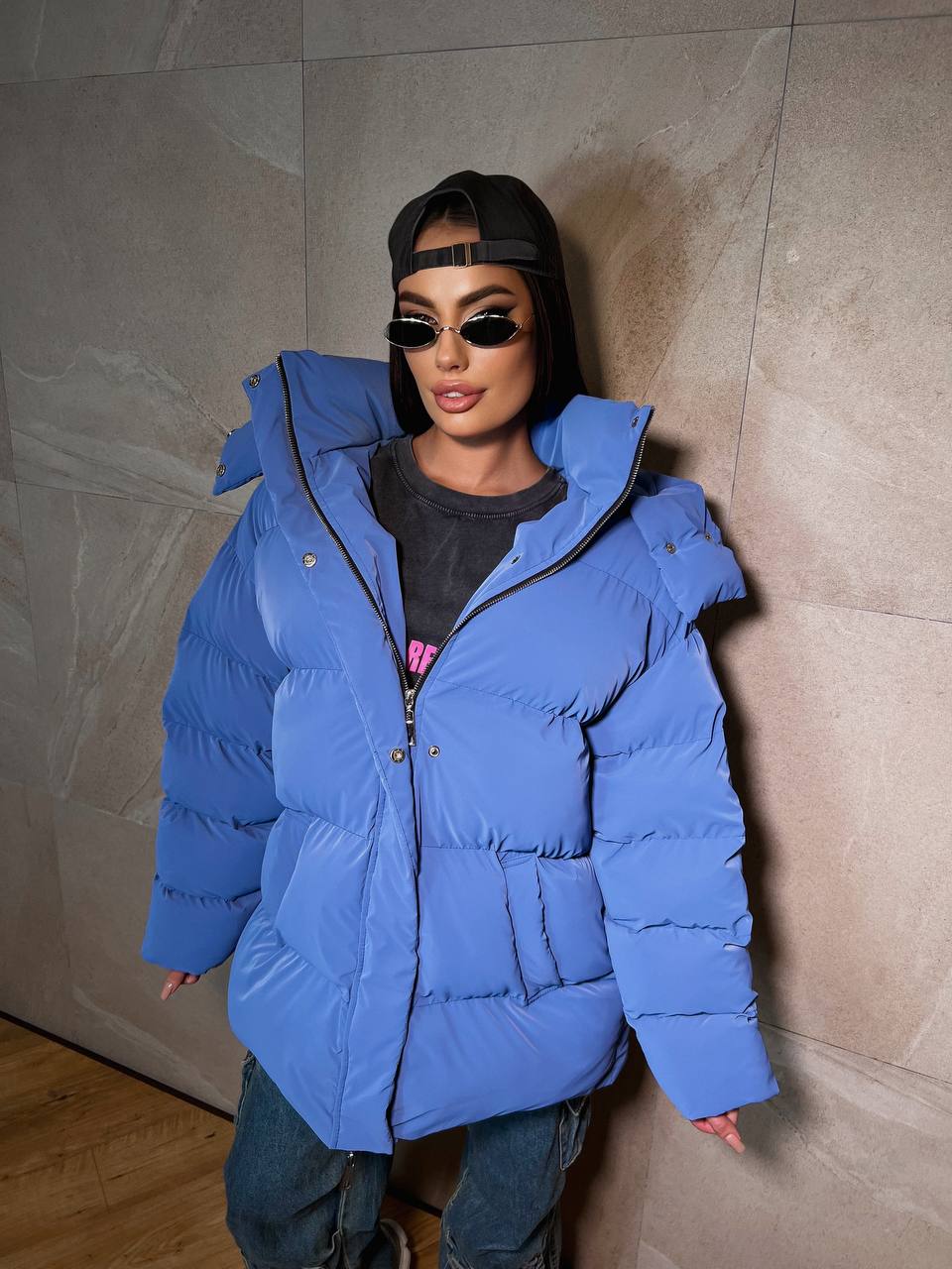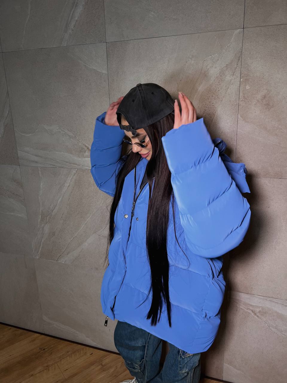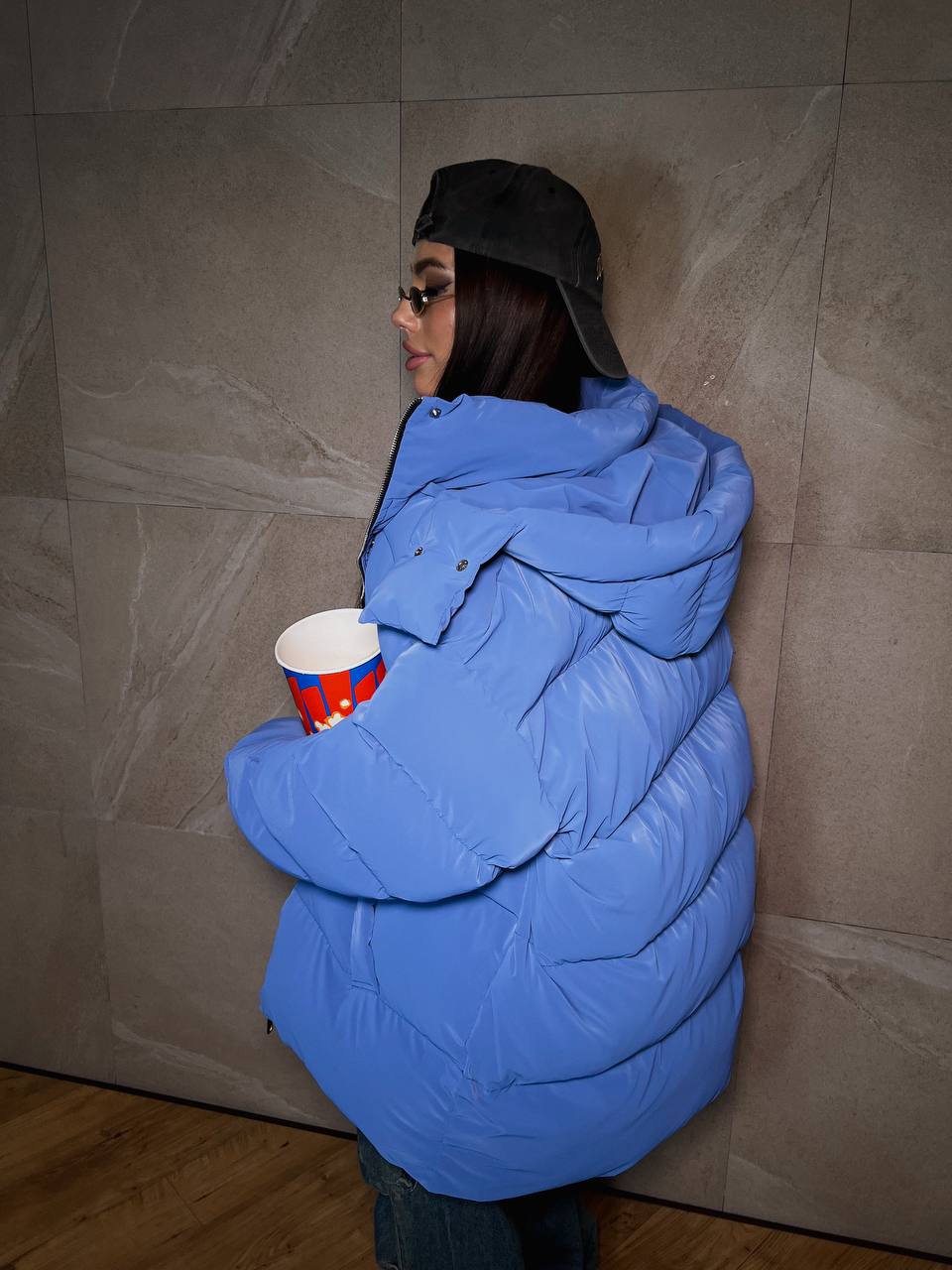 Пуховик жіночий оверсайз блакитного кольору 00421
