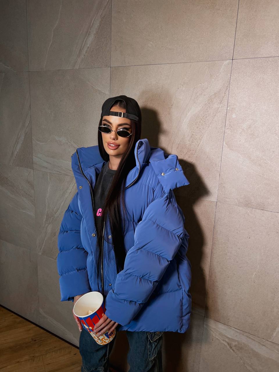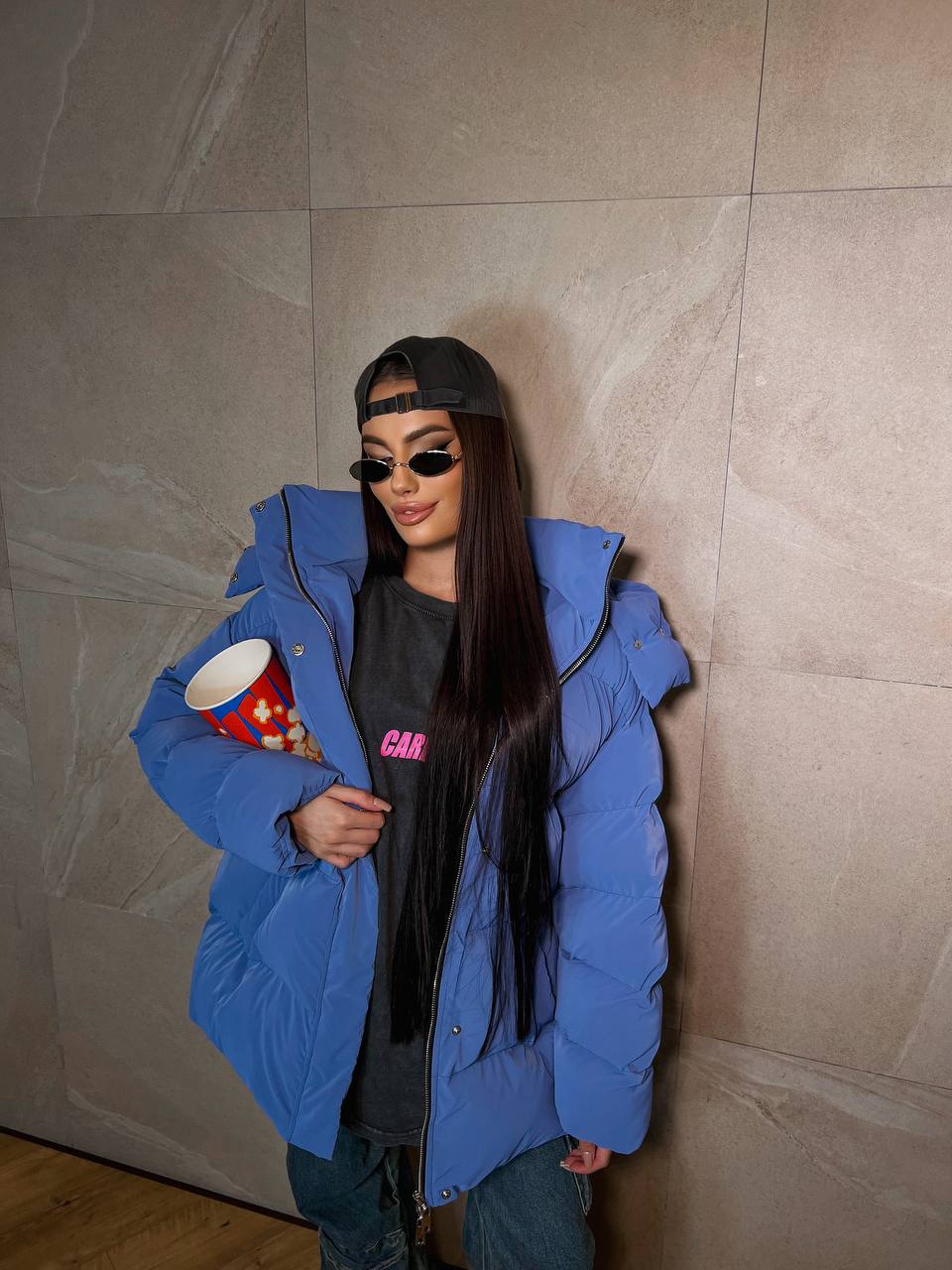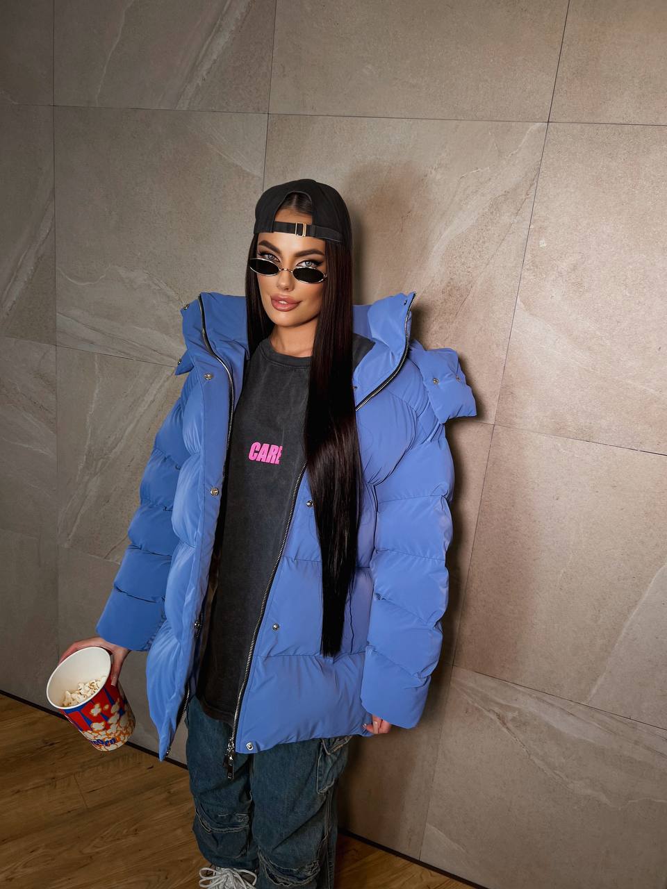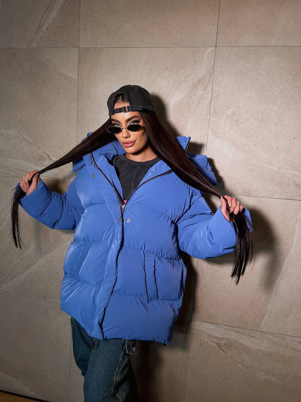 Пуховик жіночий оверсайз блакитного кольору 00421
