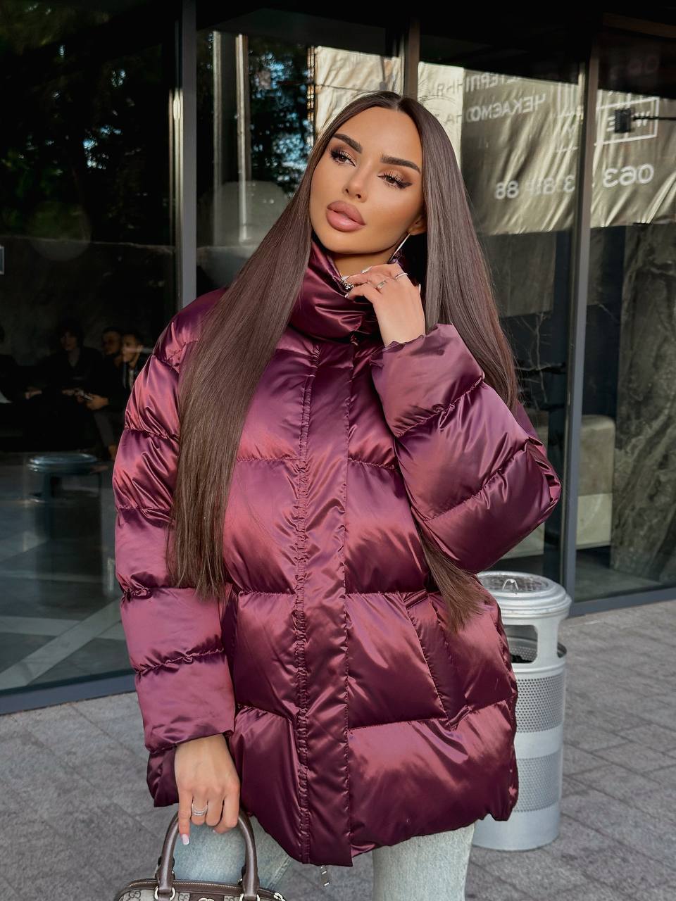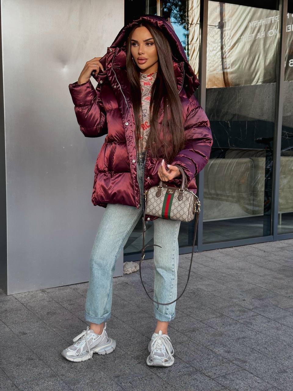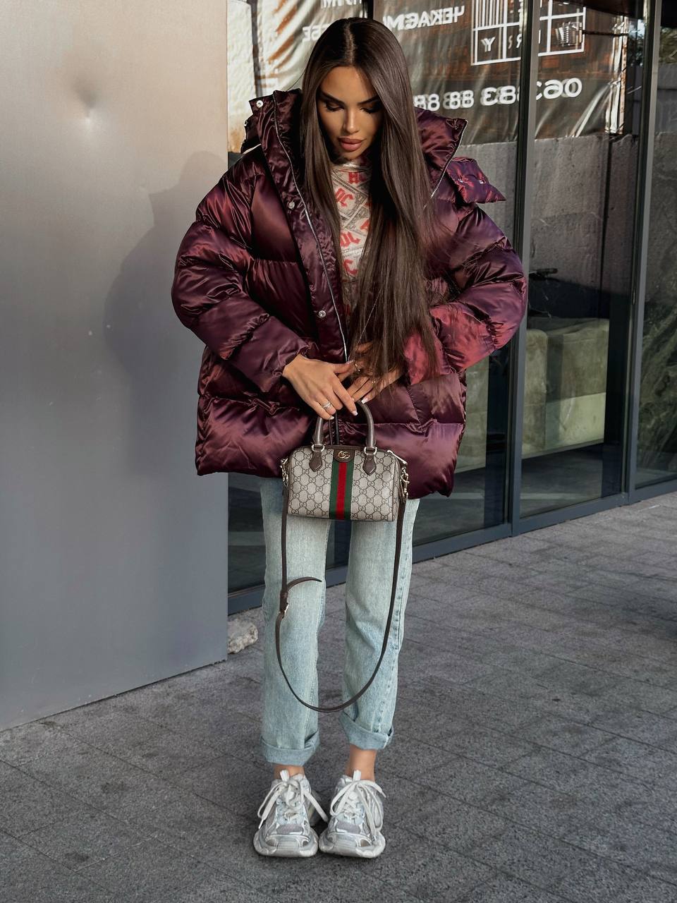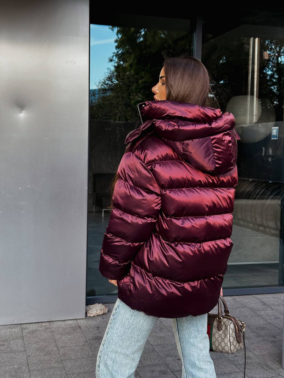 Пуховик жіночий оверсайз кольору бургунді 00420