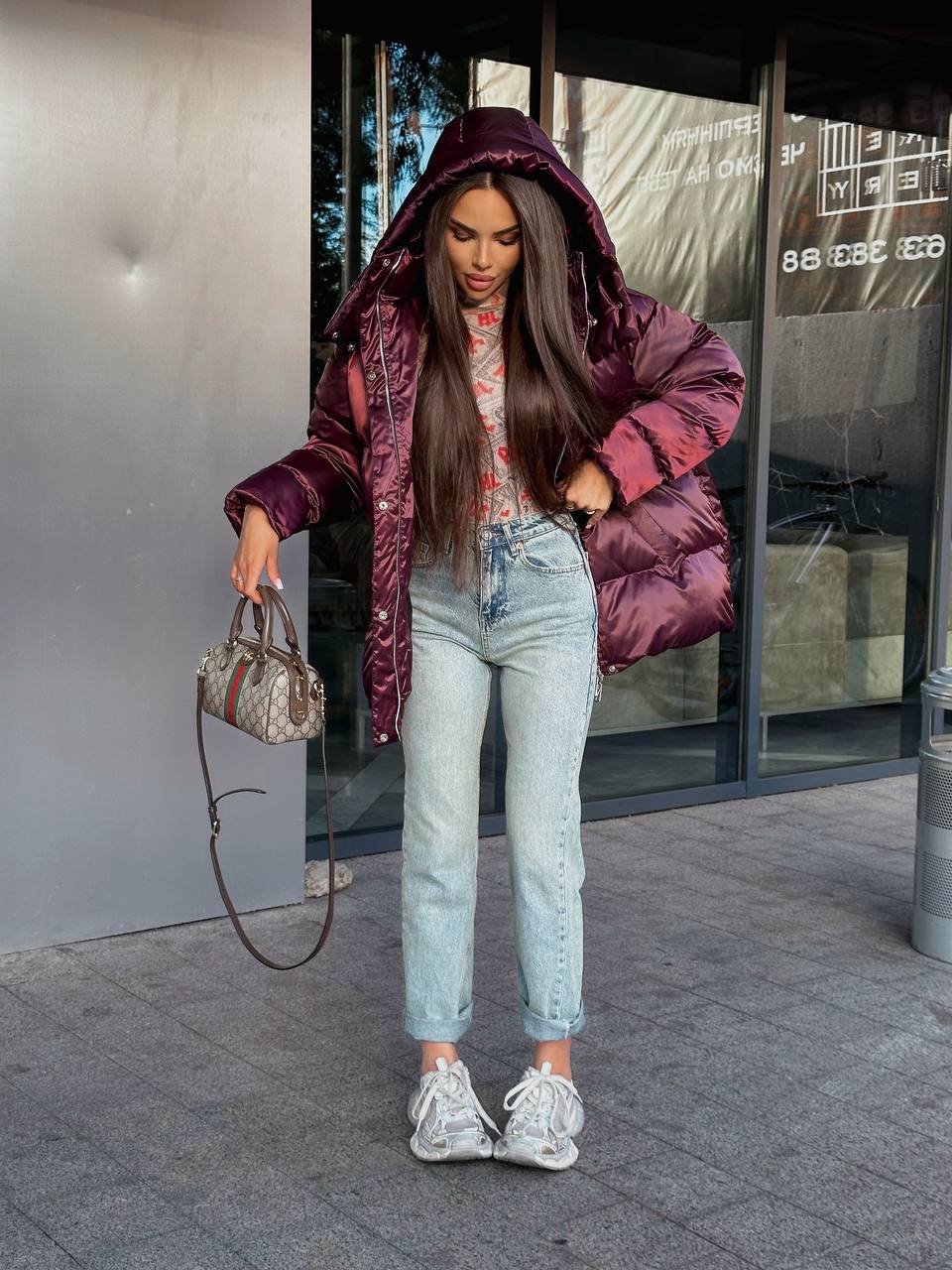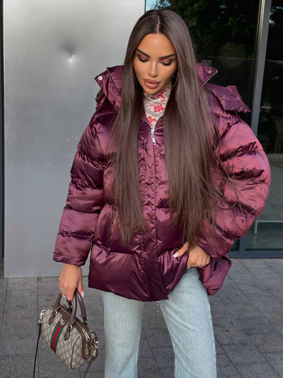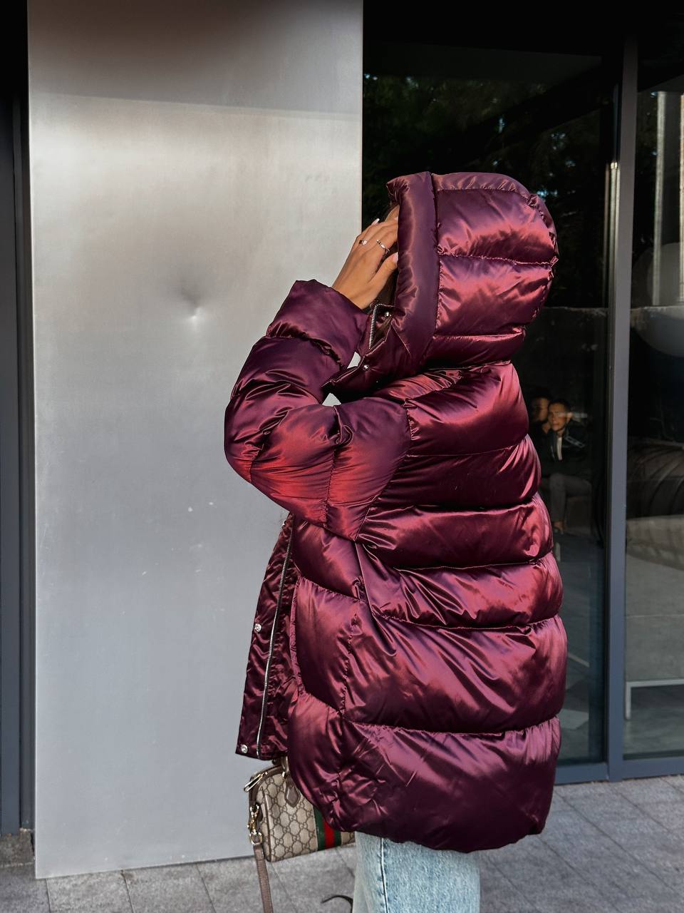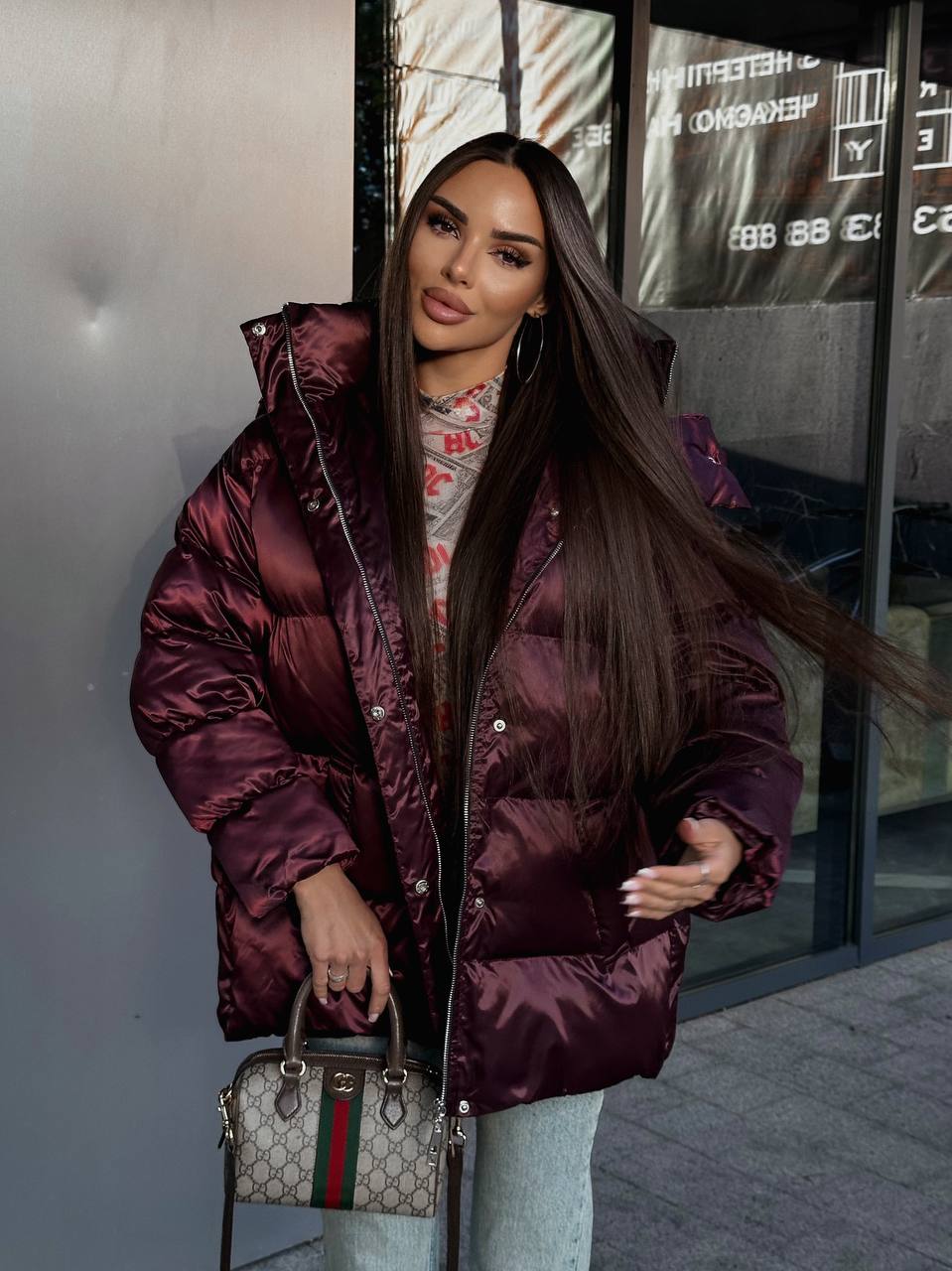 Пуховик жіночий оверсайз кольору бургунді 00420