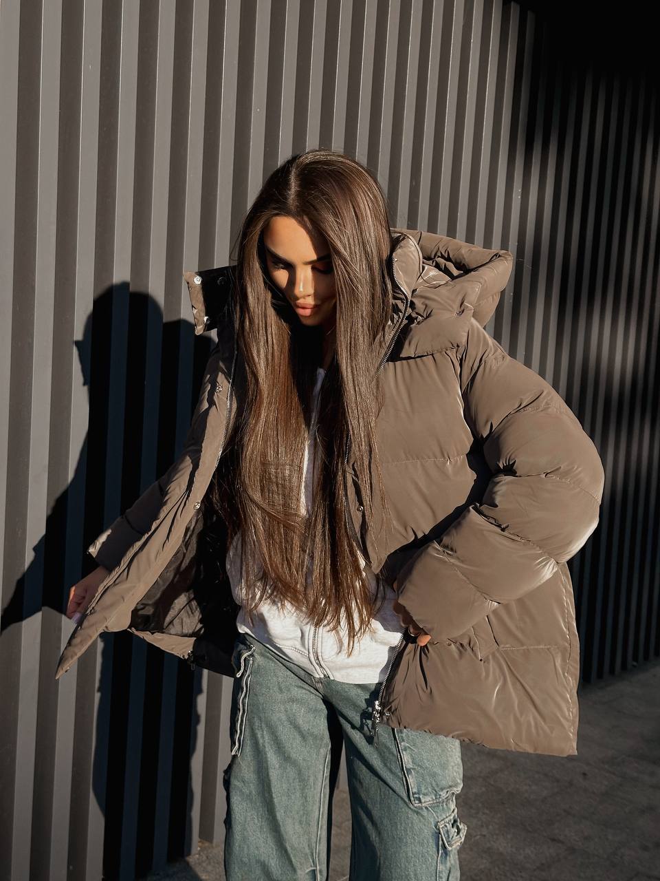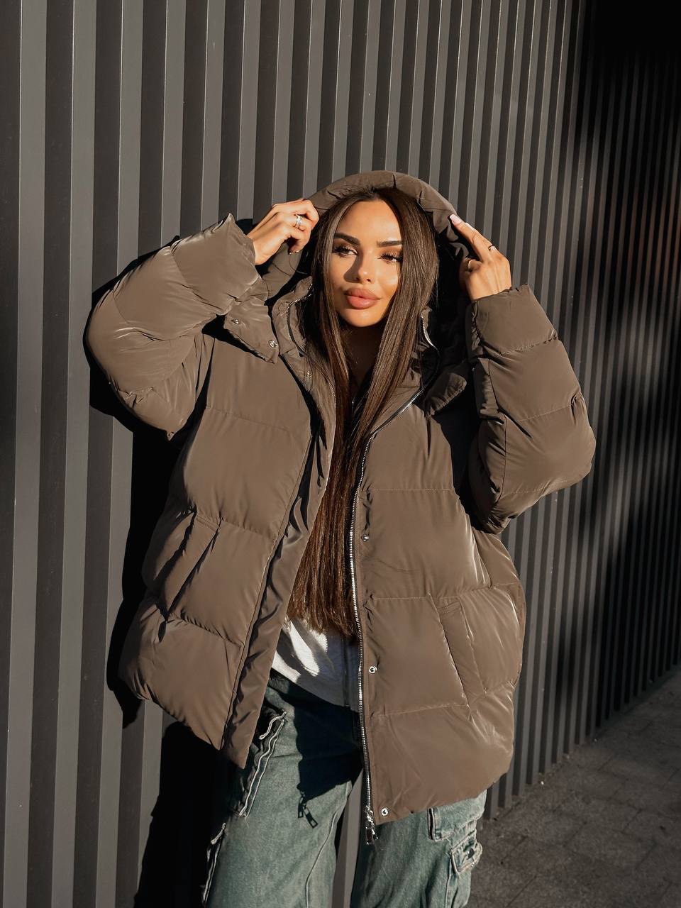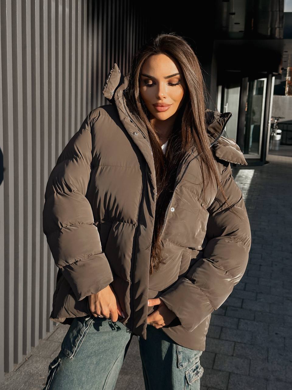 Пуховик жіночий оверсайз коричневого кольору – це мастхев цієї зими для тих, хто цінує стиль, тепло та комфорт. Легка, але неймовірно тепла модель створена з сучасної мембранної плащівки, яка надійно захищає від морозу, вітру та вологи. Завдяки вільному крою та трендовому оверсайз-силуету пуховик легко поєднується як зі спортивним, так і з повсякденним образом, додаючи йому розкішної невимушеності.