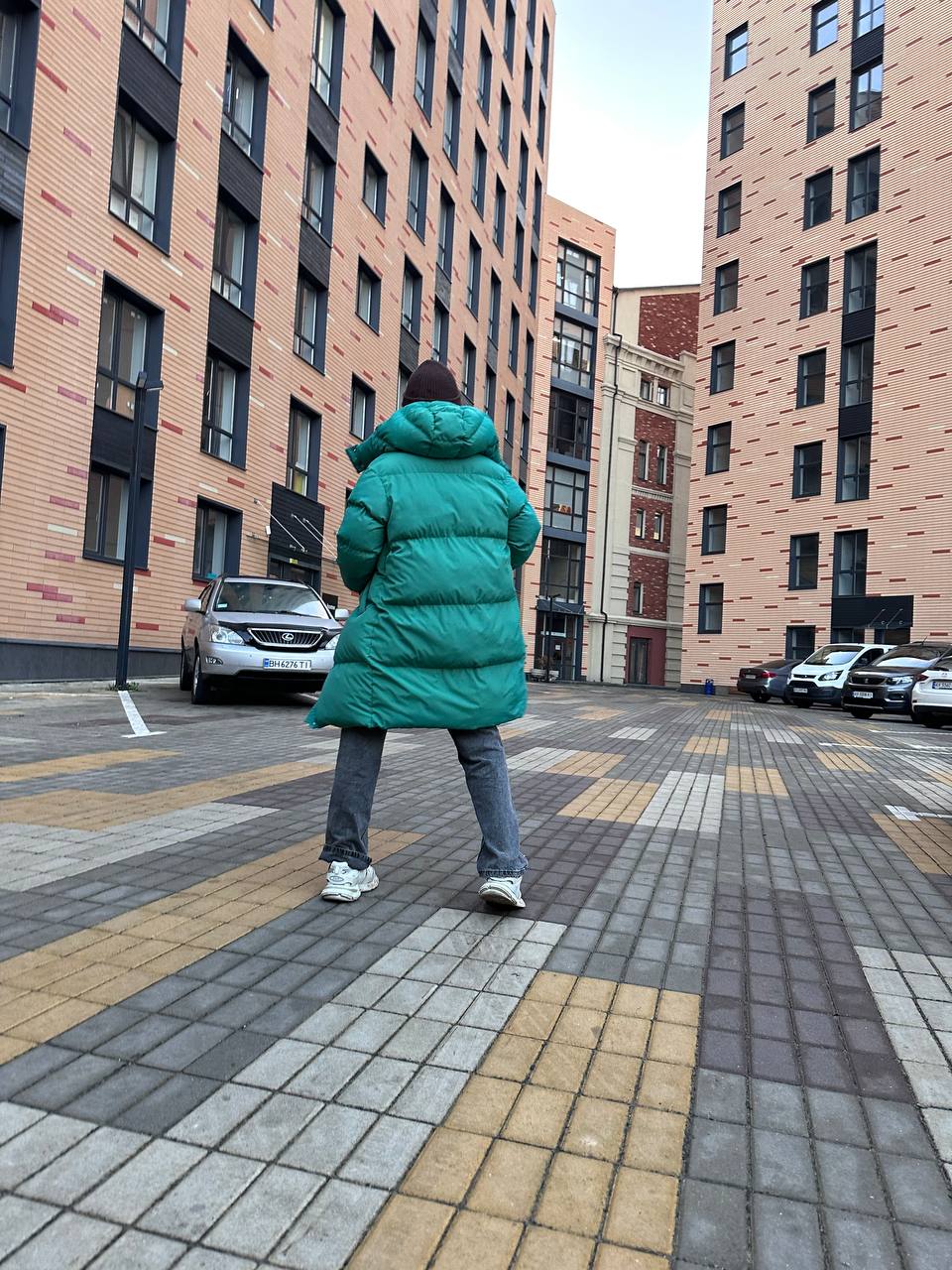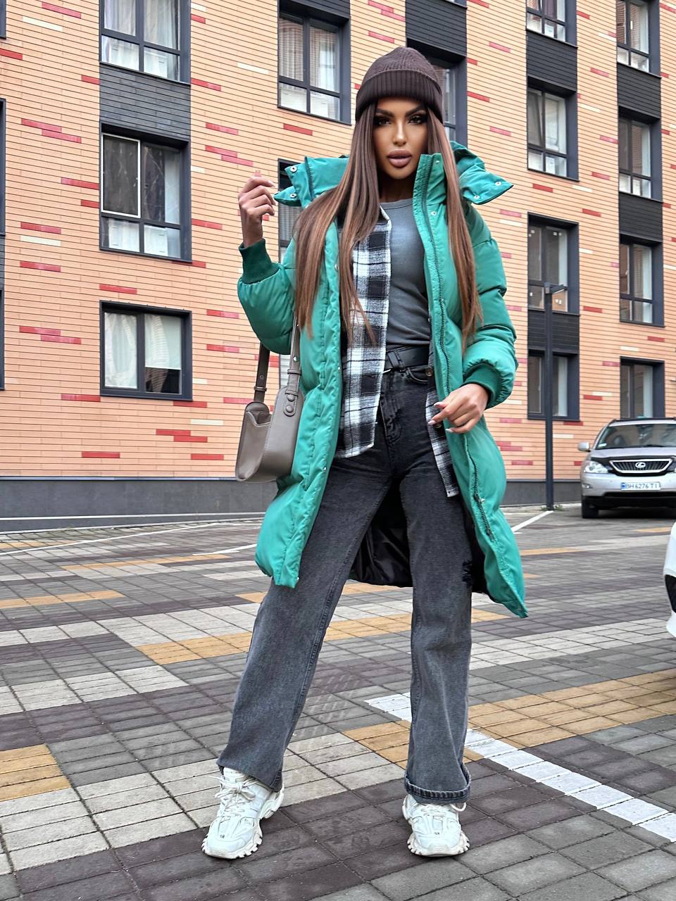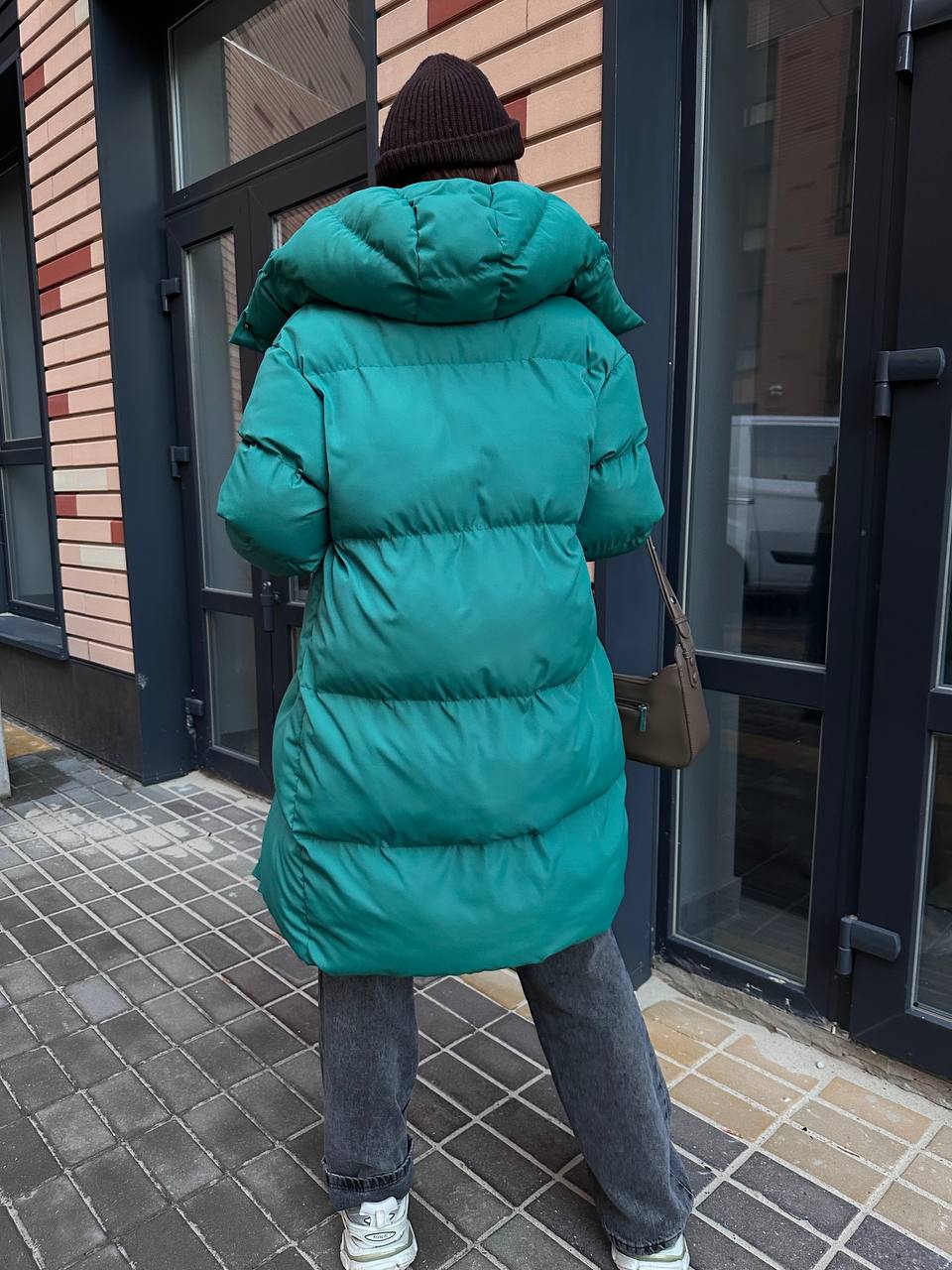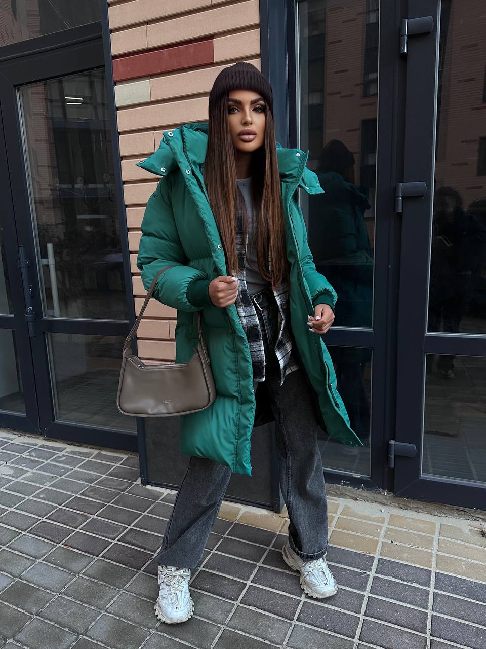 Пуховик жіночий зелений довгий 100см — стильне рішення для холодної зими. Глибокий зелений відтінок виглядає дорого й нестандартно, додаючи образу свіжості та виразності. Ця модель забезпечує комфорт і тепло навіть при температурах до -30°C, залишаючись водночас легкою та зручною у носінні.