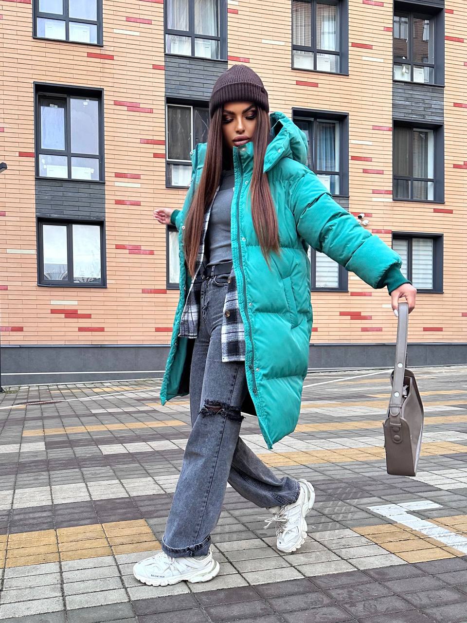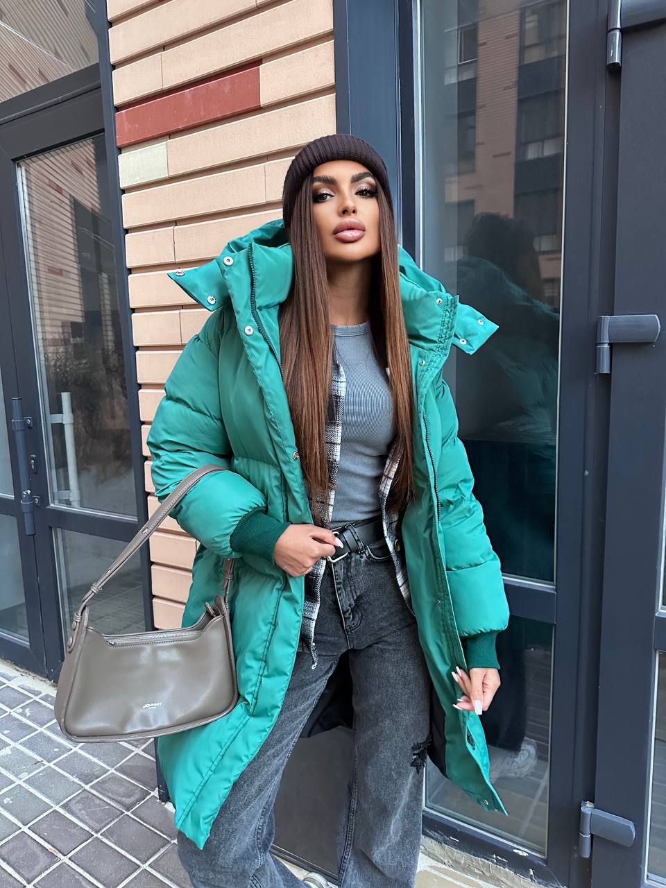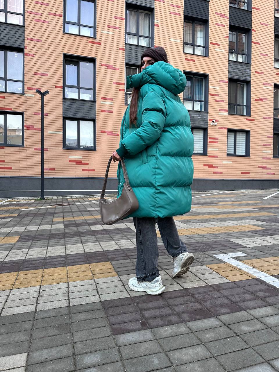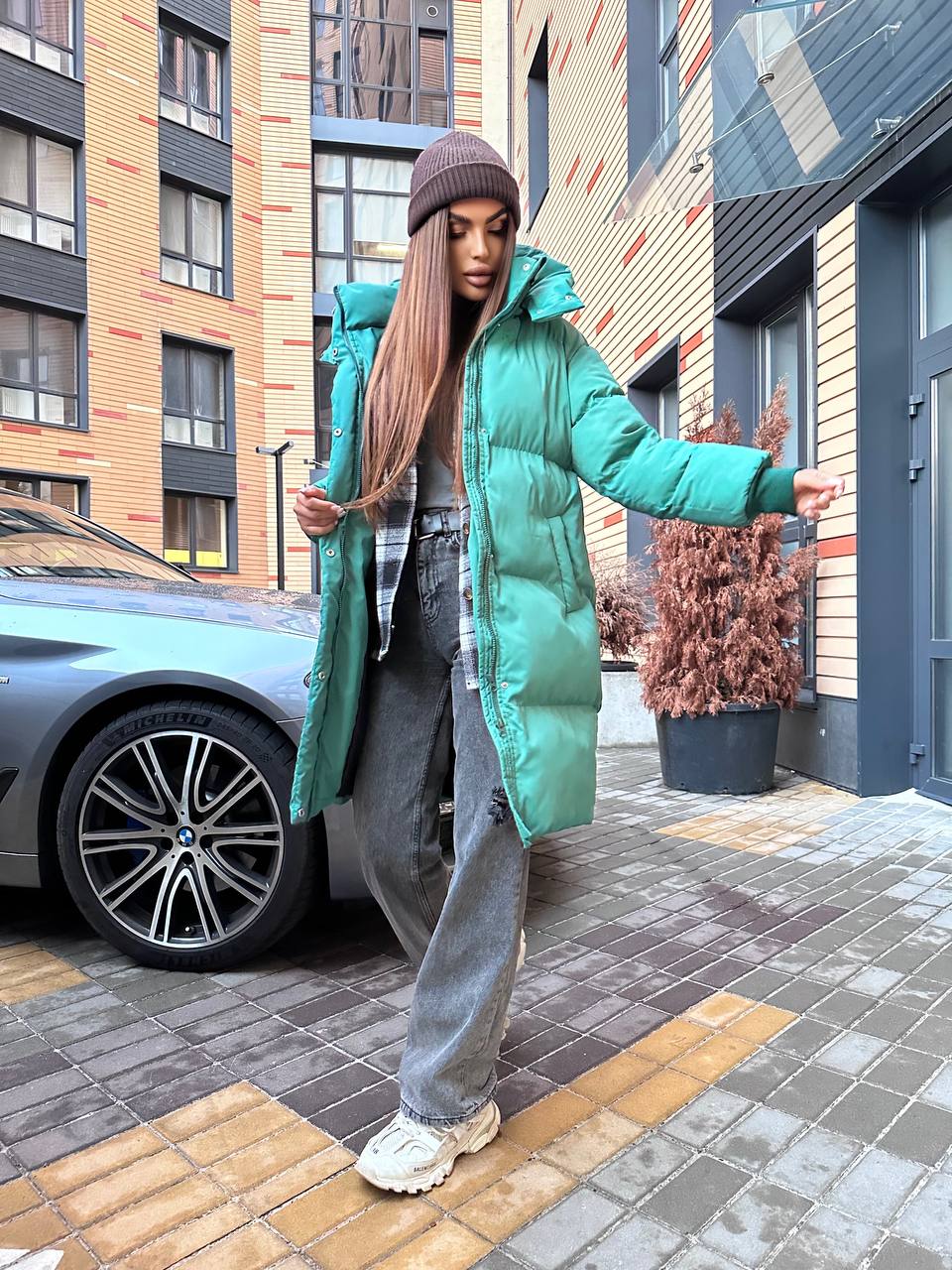 Пуховик жіночий зелений довгий 100см — стильне рішення для холодної зими. Глибокий зелений відтінок виглядає дорого й нестандартно, додаючи образу свіжості та виразності. Ця модель забезпечує комфорт і тепло навіть при температурах до -30°C, залишаючись водночас легкою та зручною у носінні.