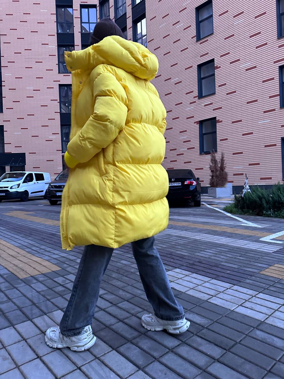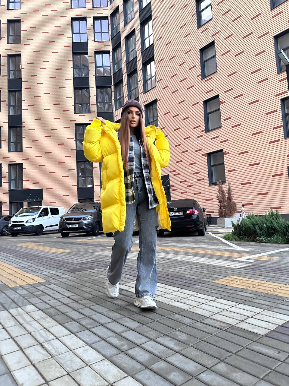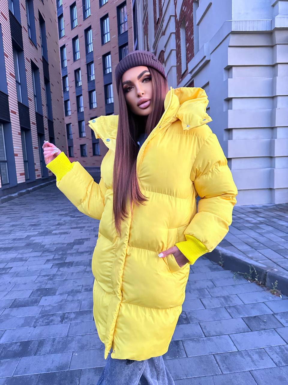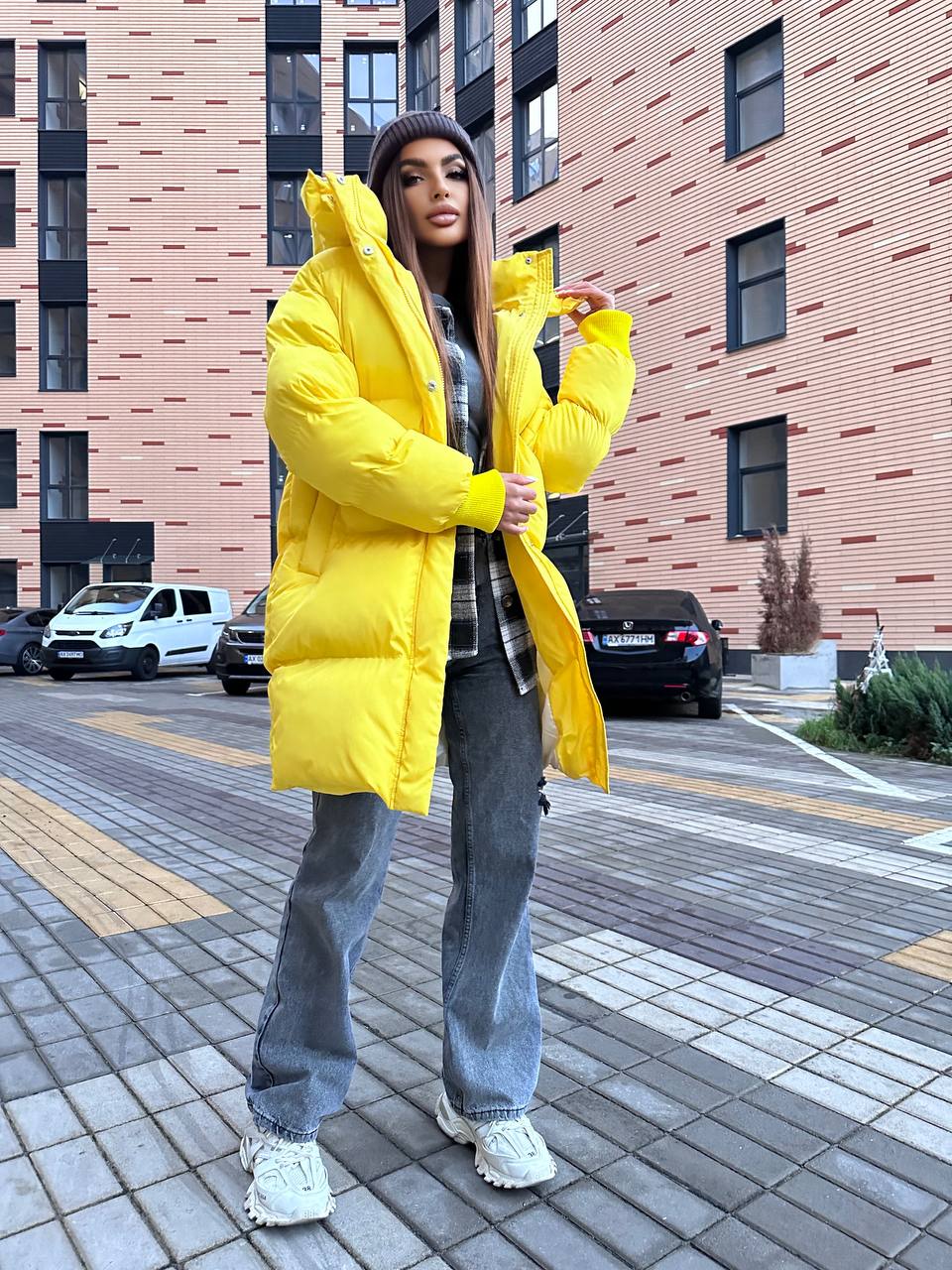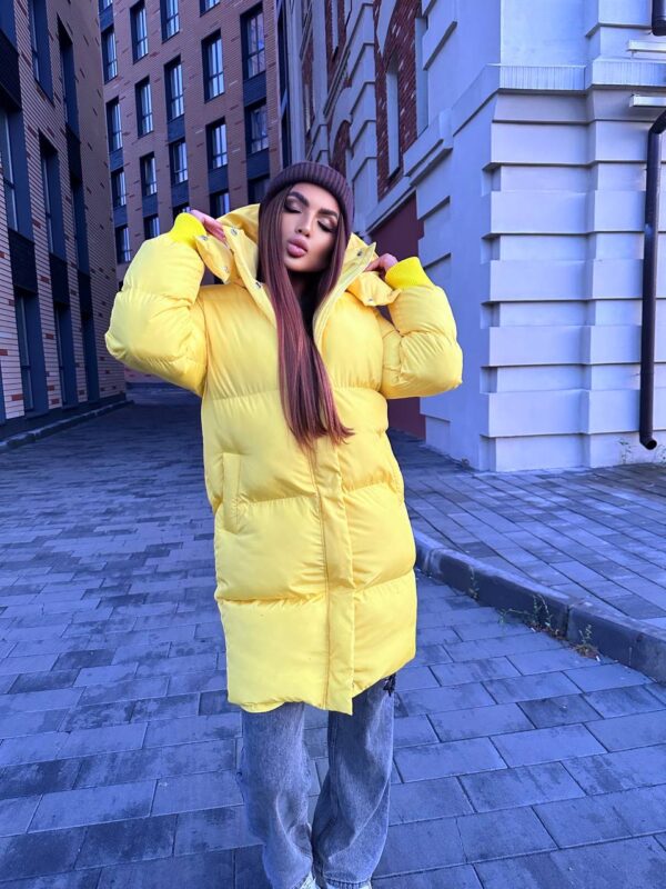 Пуховик жіночий жовтий довгий 100см — це стиль, тепло та гарний настрій навіть у найхолодніші зимові дні. Яскравий жовтий відтінок додає образу енергійності та виразності, підкреслюючи індивідуальність. Ця модель стане вашим незамінним зимовим супутником, даруючи комфорт і захист при температурах до -30°C.