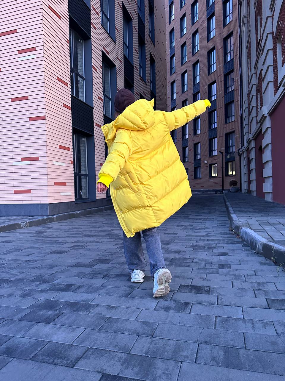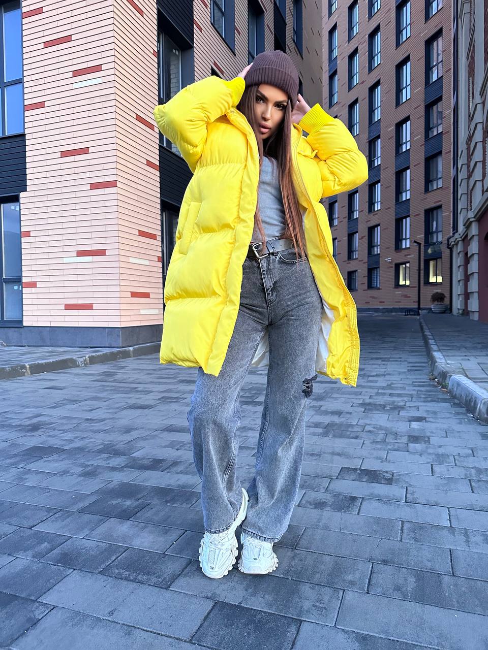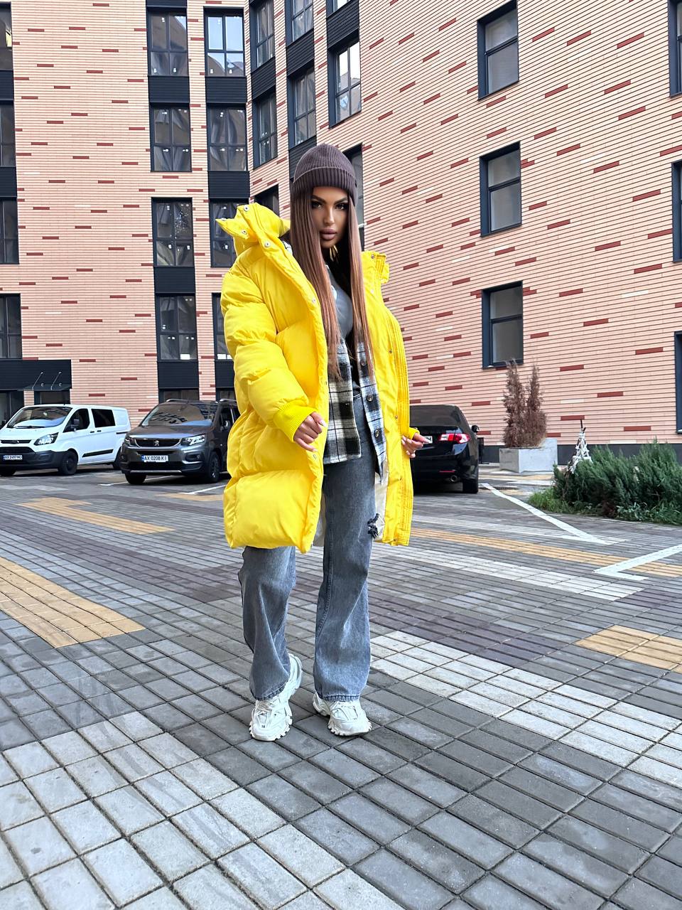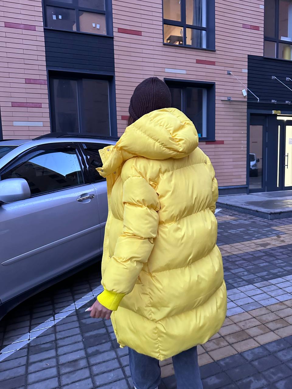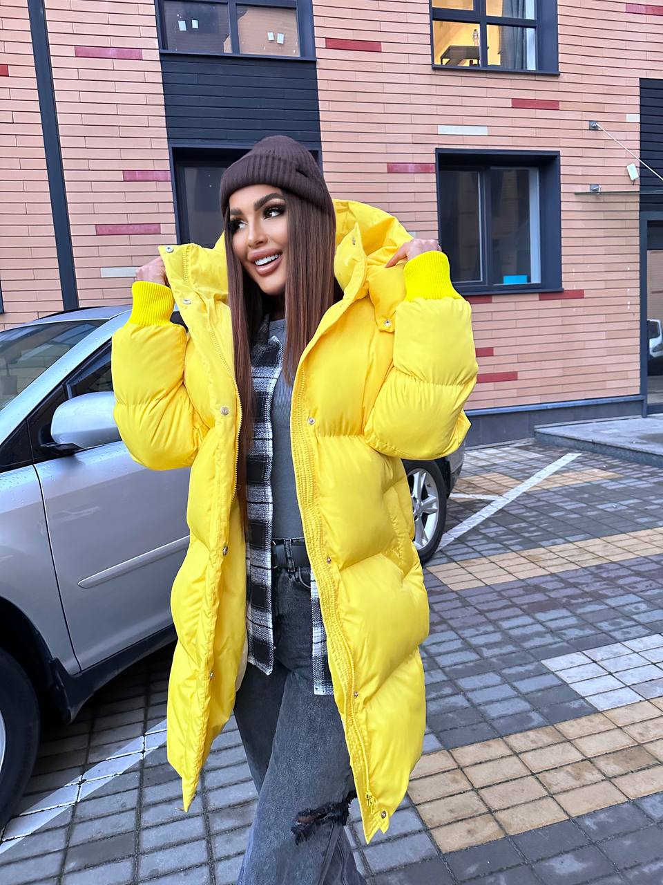 Пуховик жіночий жовтий довгий 100см — це стиль, тепло та гарний настрій навіть у найхолодніші зимові дні. Яскравий жовтий відтінок додає образу енергійності та виразності, підкреслюючи індивідуальність. Ця модель стане вашим незамінним зимовим супутником, даруючи комфорт і захист при температурах до -30°C.