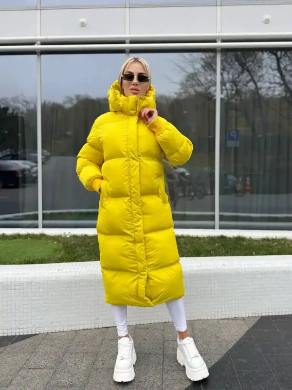Пуховик жіночий жовтий довгий 120 см – яскравість, тепло та стиль у зимову пору