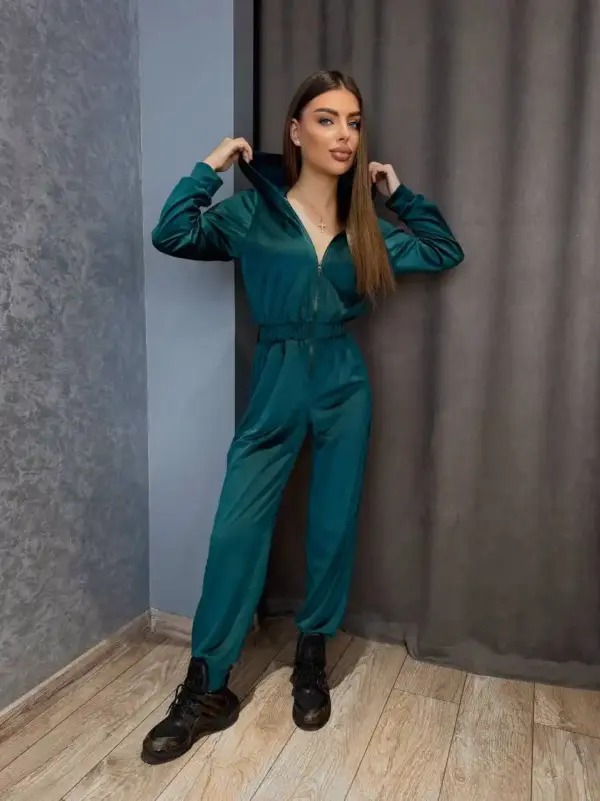 Додати до відстеження цінВелюровий комбінезон жіночий зелений – стиль та комфорт у кожній деталі