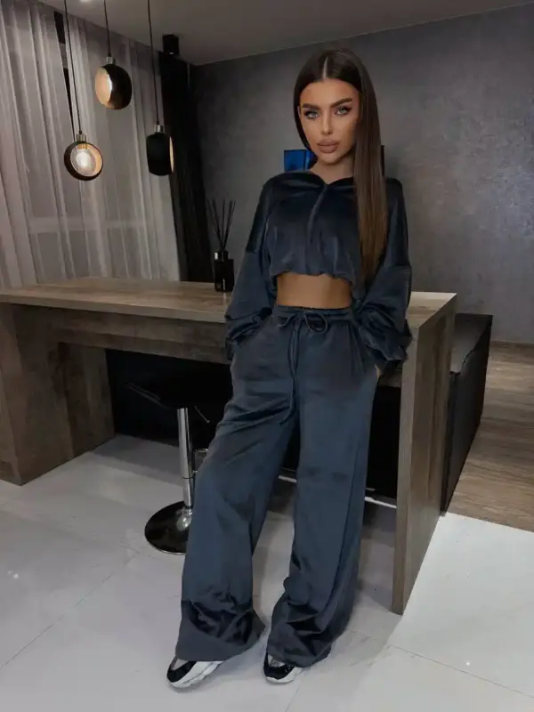 🔘 Велюровий костюм жіночий графіт – це поєднання елегантності та зручності. Завдяки м’якому та приємному до тіла велюру, костюм ідеально підходить як для прогулянок, так і для домашнього відпочинку.