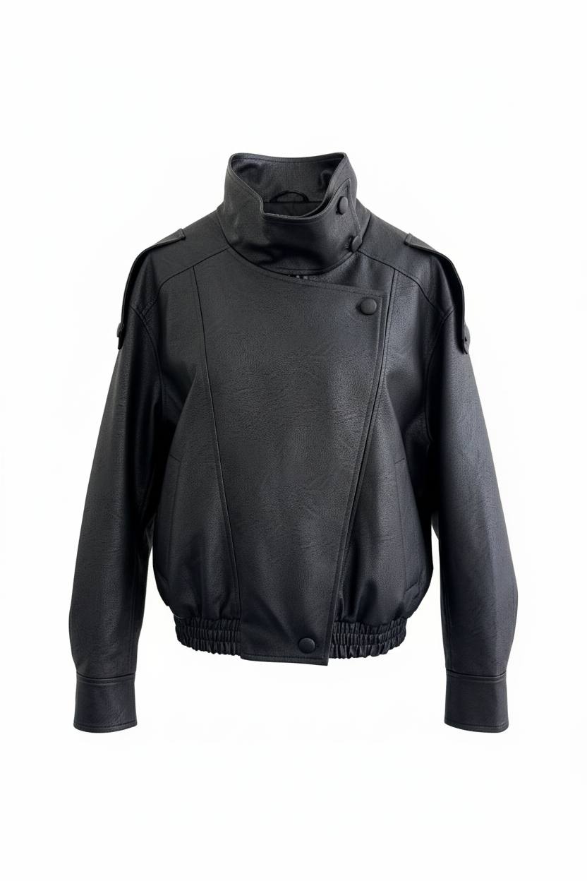 Жіноча куртка з екошкіри асиметричного крою чорного кольору 00681