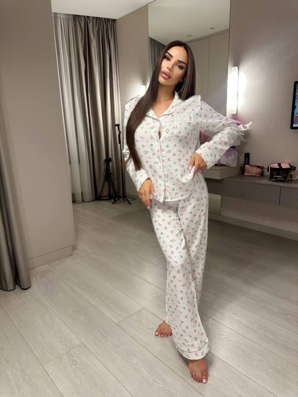 Жіноча піжама з сорочкою та штанами в квітку рожевого кольору 00439