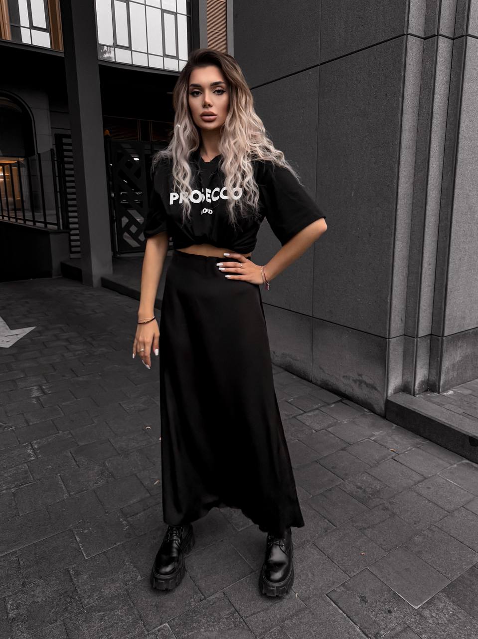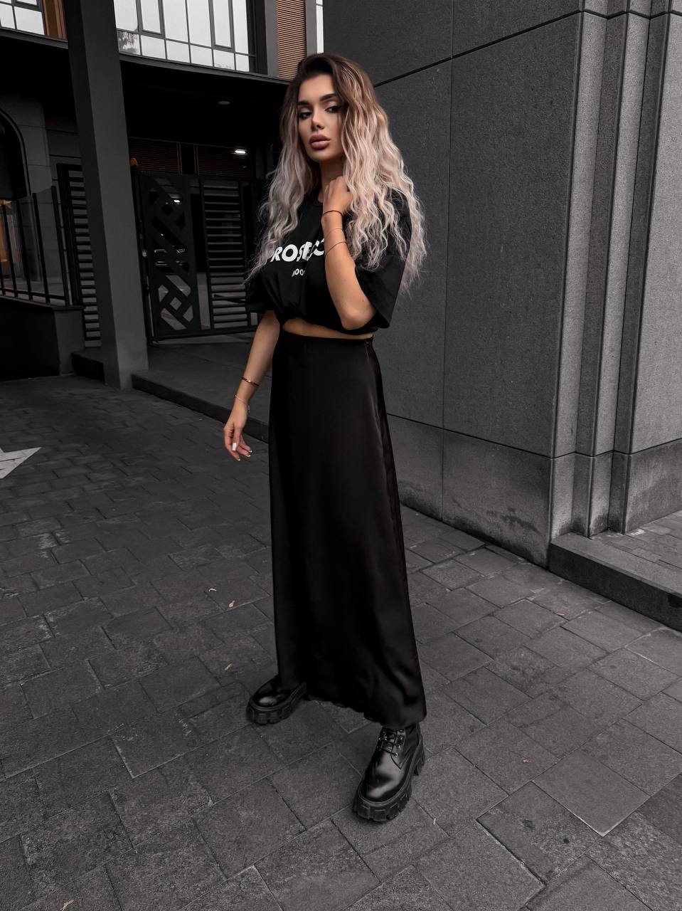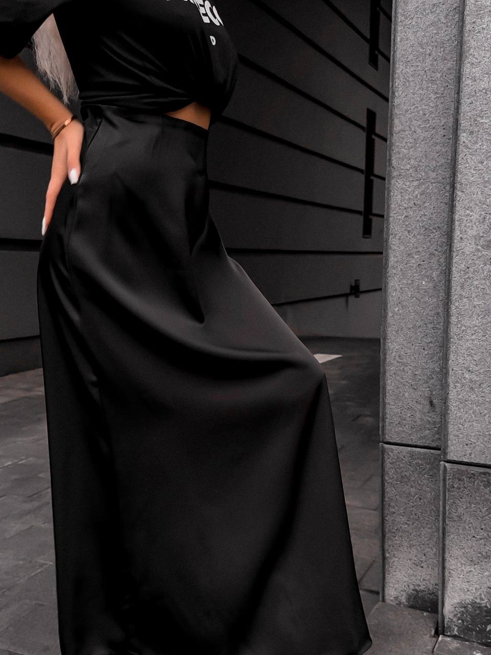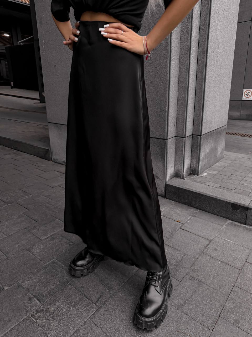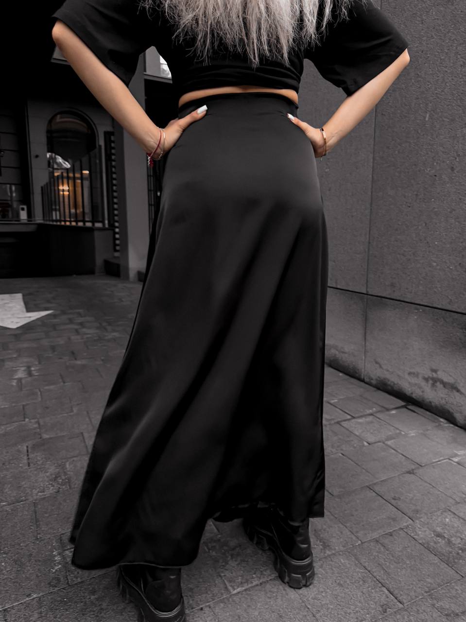 Жіноча сатинова спідниця чорна довга – стильна довга спідниця з благородного сатину. Вона дарує елегантність, легкість та впевненість у будь-якому образі. Ідеально підходить як для повсякденних виходів, так і для святкових подій.