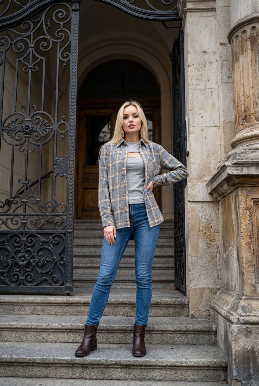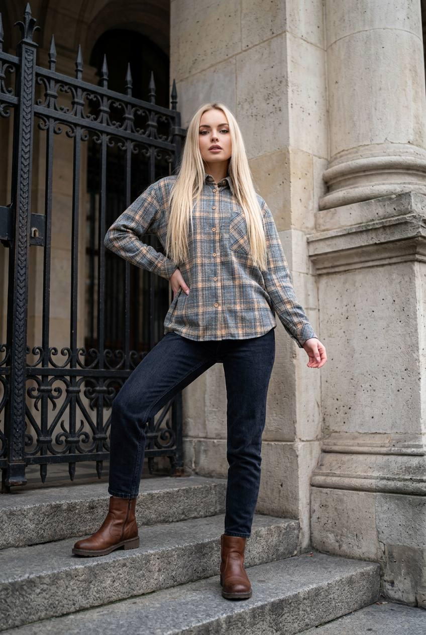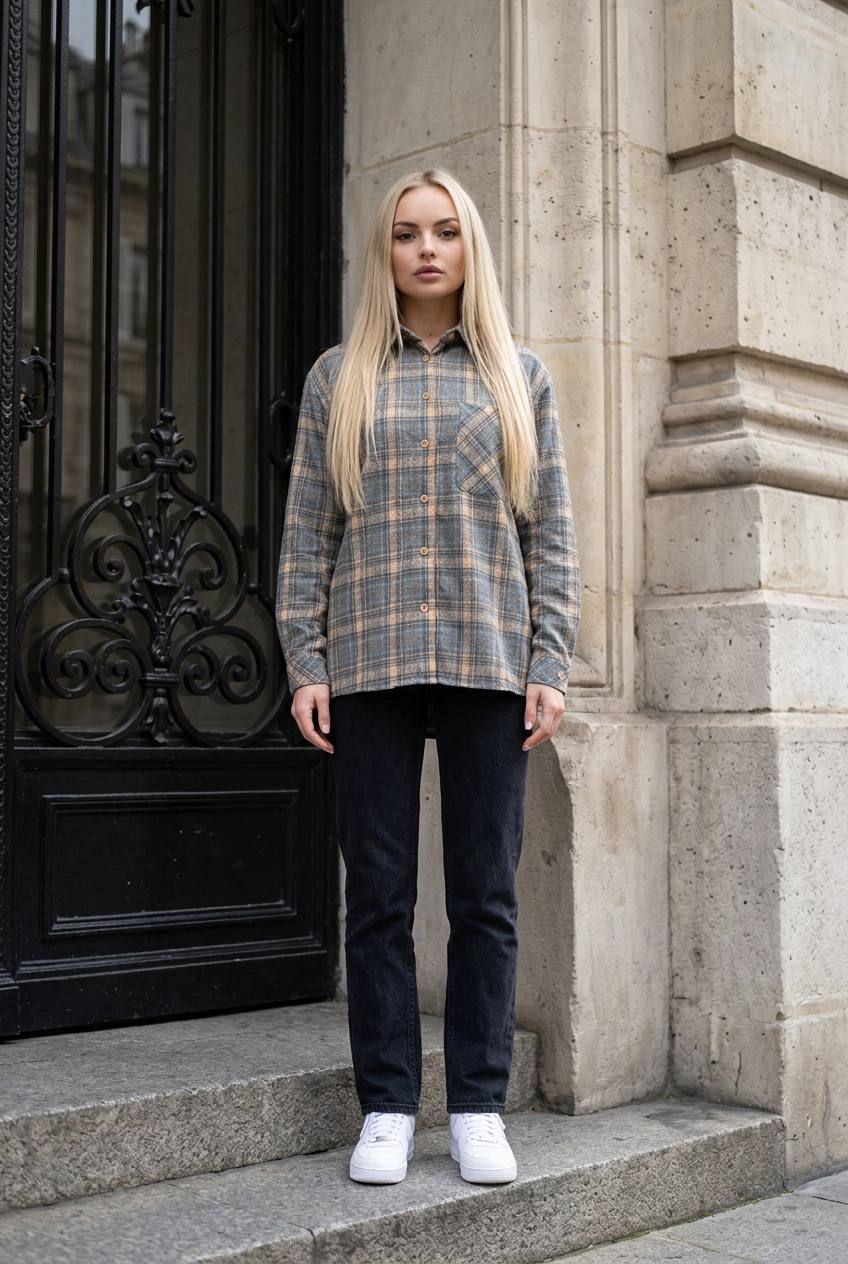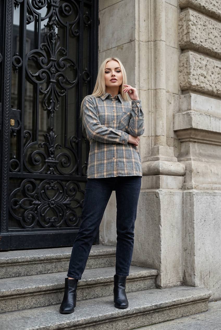 Класичний крій із коміром, ґудзиками по всій довжині та нагрудною кишенею створює універсальний стиль. Сорочку можна носити як самостійний елемент гардеробу або як легку накидку поверх футболки чи топа. Клітинний візерунок додає образу модного casual-настрою та легко поєднується з джинсами, брюками або легінсами.