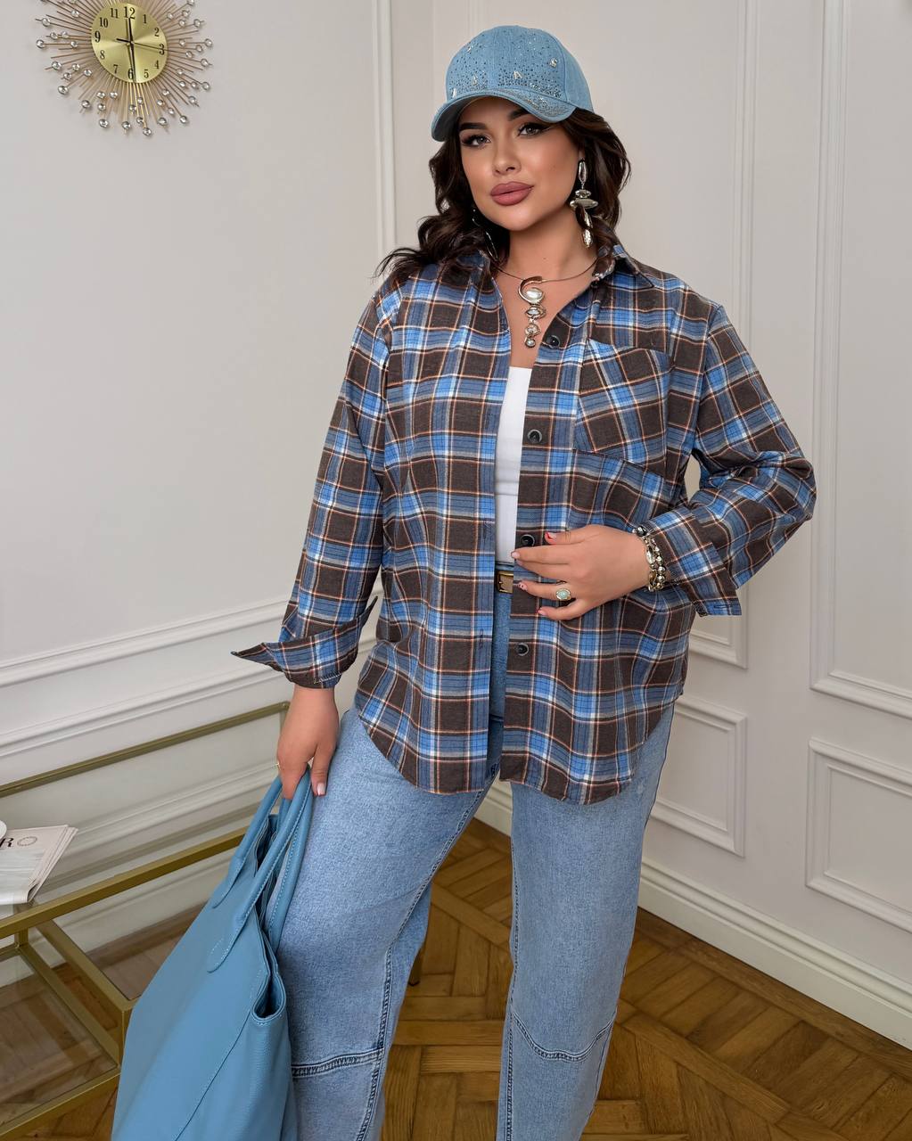 Додати до відстеження цінЖіноча стильна сорочка в клітинку шоколадно блакитного кольору – яка поєднує комфорт, якісні матеріали та універсальний дизайн. Модель виконана з турецького фланелю (100% бавовна) — м’якої, приємної до тіла тканини, яка добре дихає та забезпечує комфорт у прохолодну погоду.