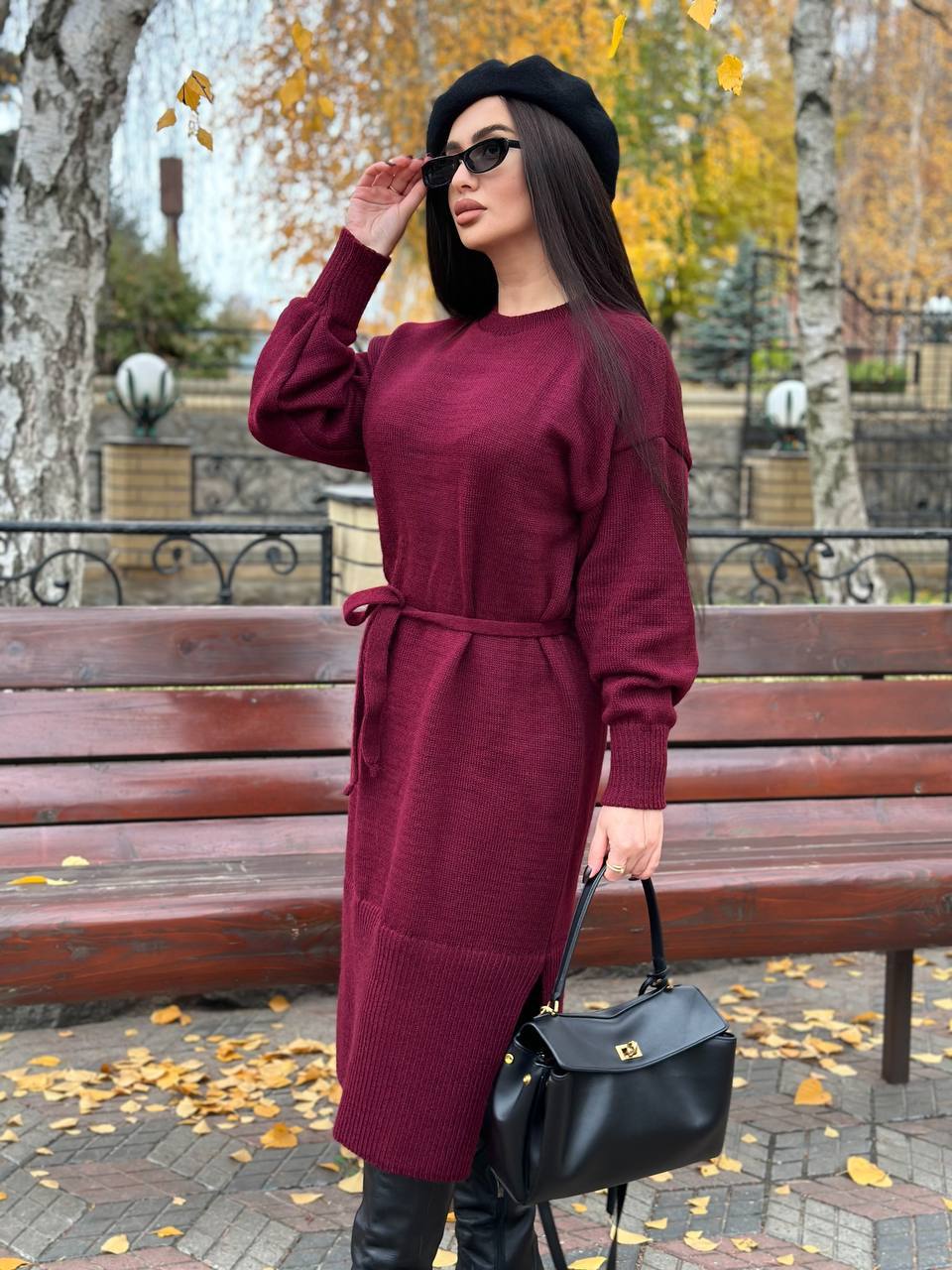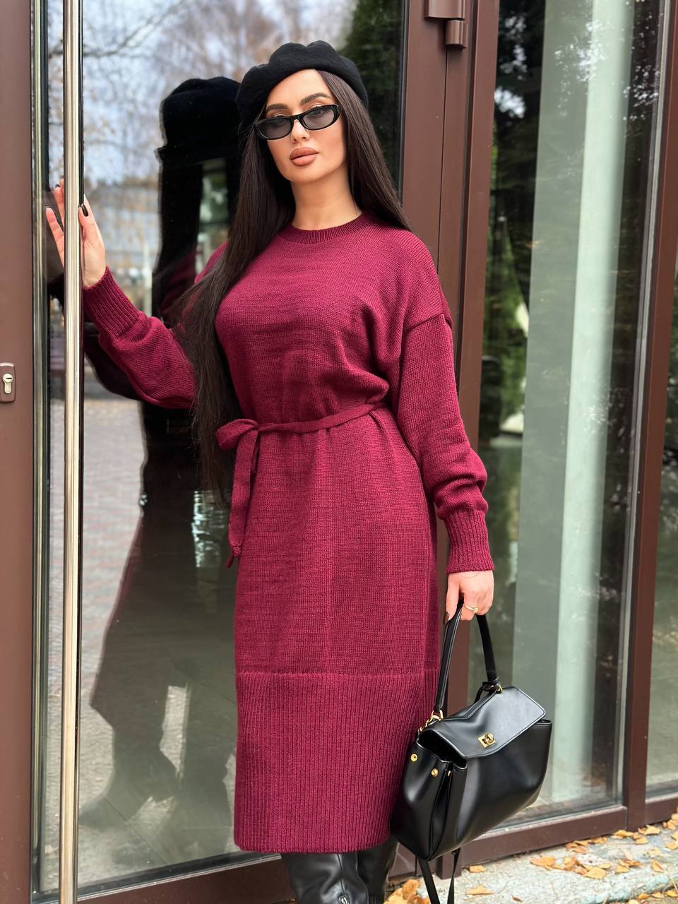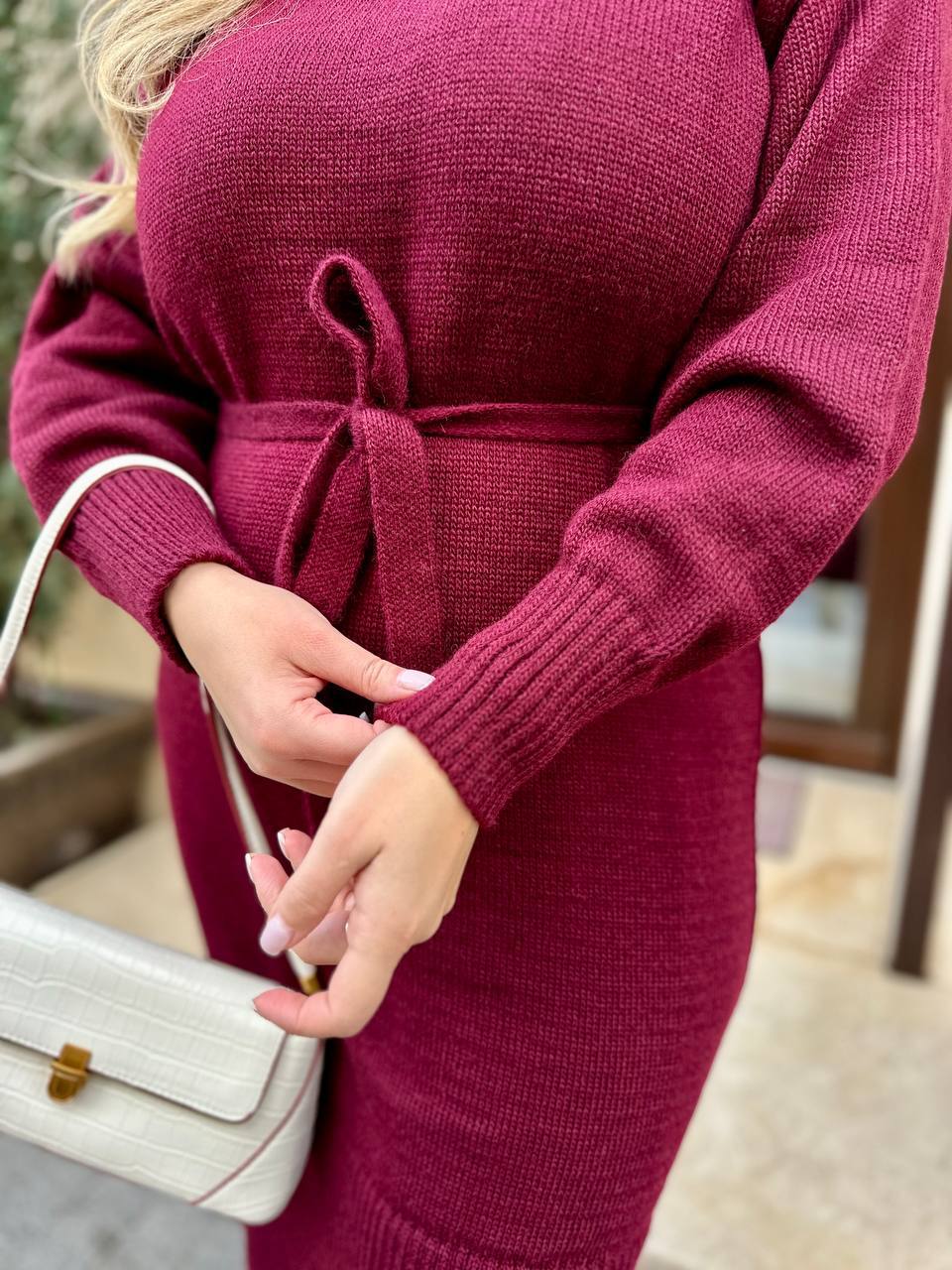 Додати до відстеження цінЖіноча сукня з поясом бордового кольору — стильна та комфортна модель для прохолодної пори року. М’яка напіввовняна пряжа приємна до тіла, добре зберігає тепло та забезпечує комфорт протягом дня. Завдяки універсальному крою сукня красиво сідає на різні типи фігури та підходить для створення як повсякденних, так і більш елегантних образів.