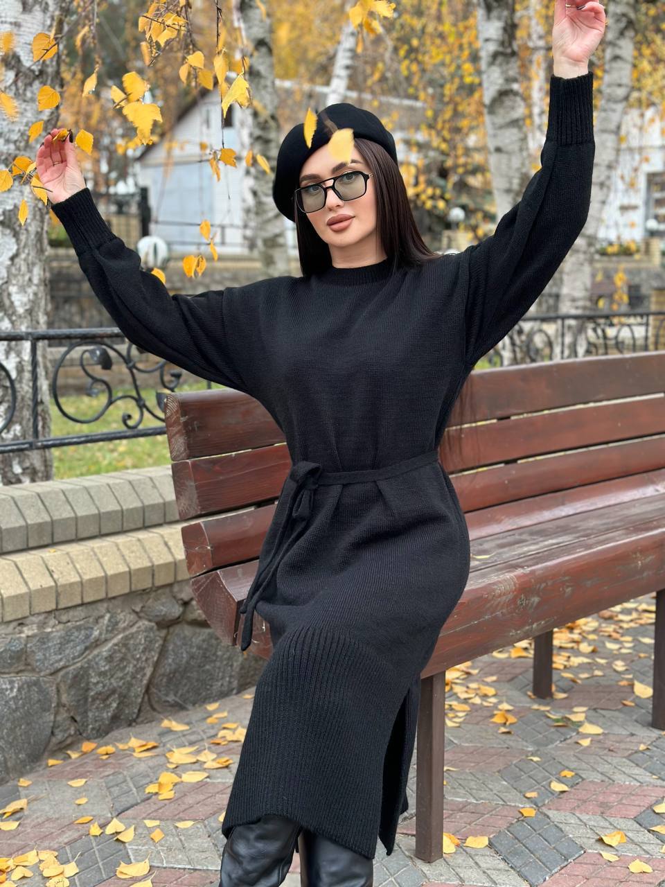 Модель виглядає актуально та легко поєднується з чоботами, черевиками або кросівками. Пояс дозволяє підкреслити талію та створити більш жіночний силует. Довгі манжети на рукавах додають акуратності та забезпечують комфортну посадку. У нижній частині сукні передбачені розрізи з боків, які роблять модель зручнішою у русі та додають образу легкості. Ідеальний варіант для осінньо-зимового гардероба. Сукня практична у догляді: легко переться та швидко сохне, зберігаючи форму та гарний вигляд.