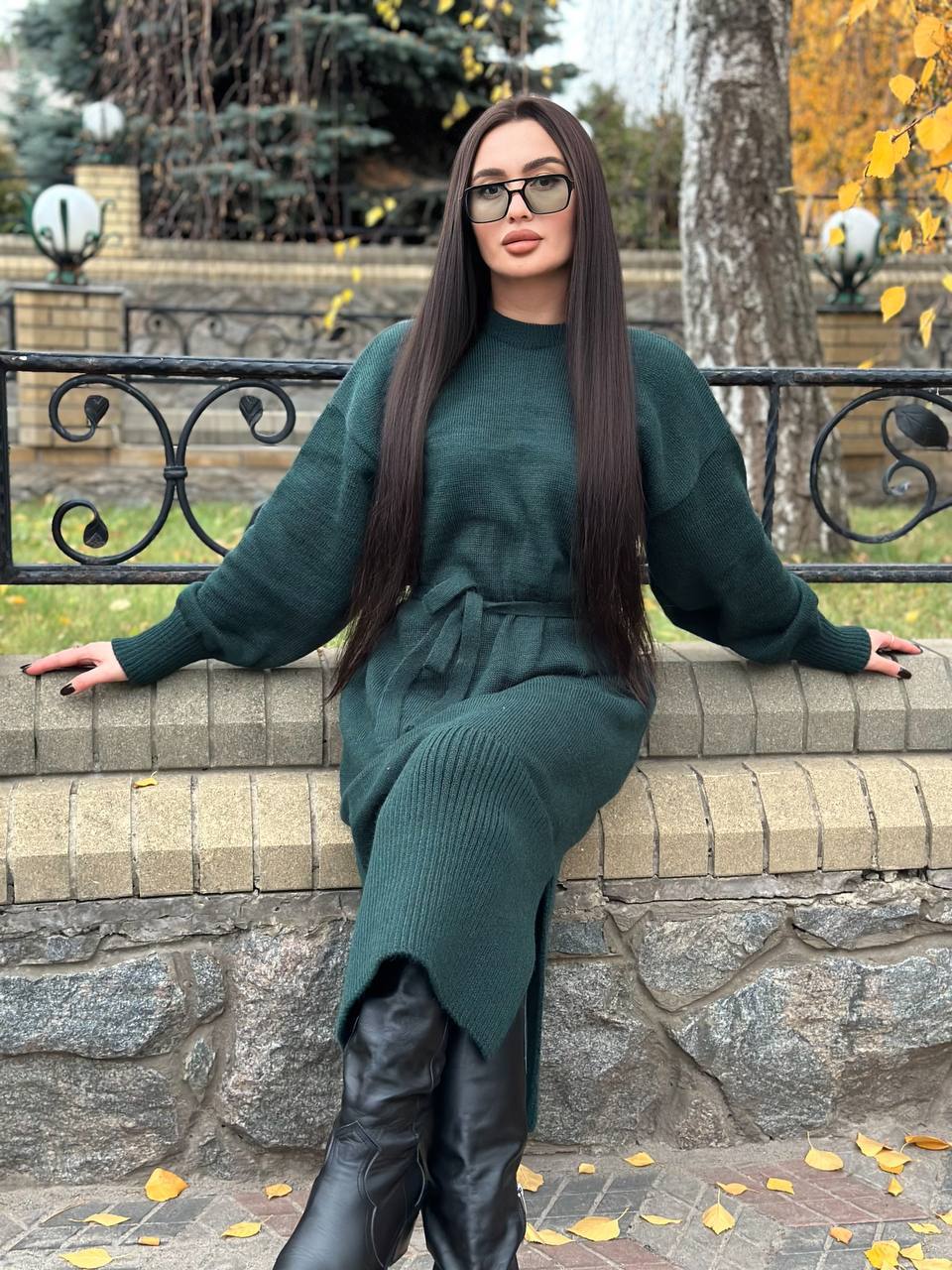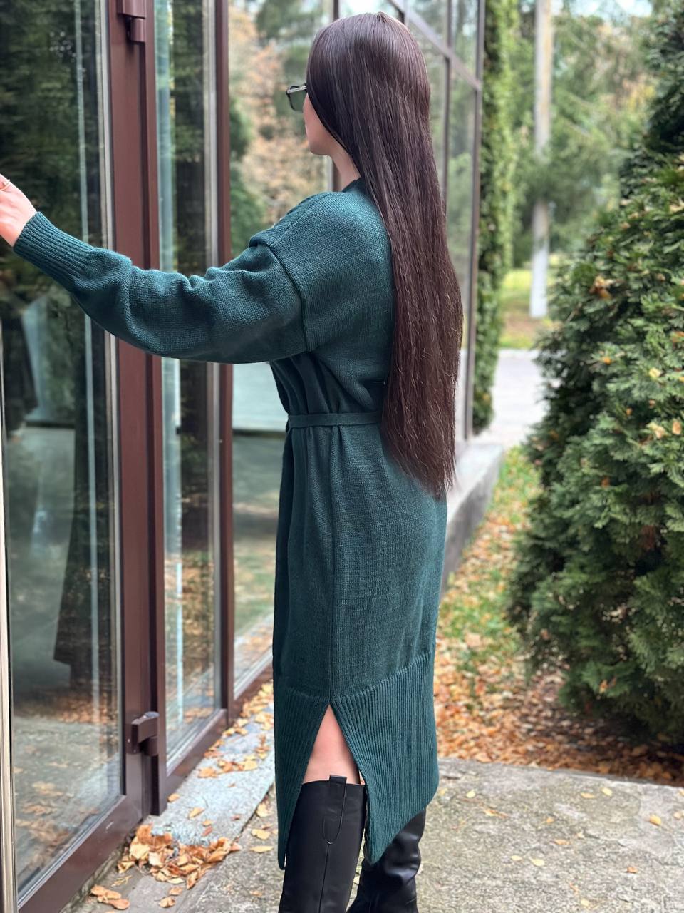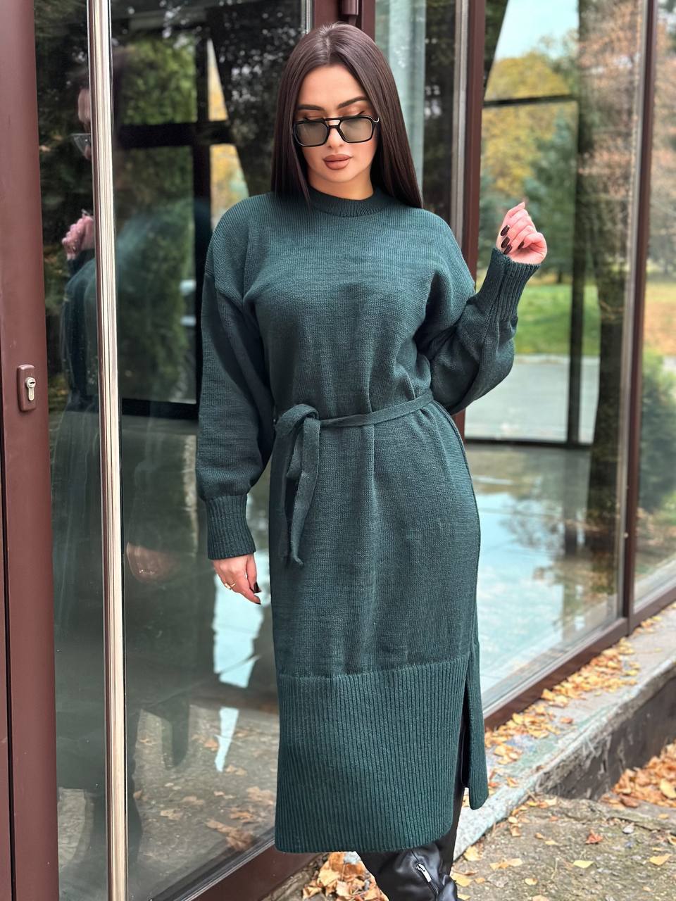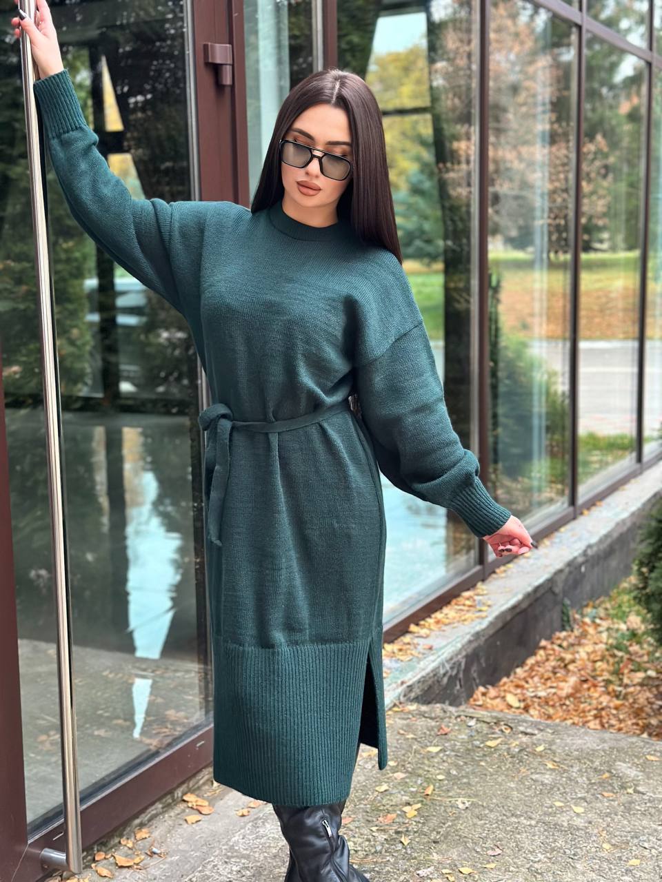 Модель виглядає актуально та легко поєднується з чоботами, черевиками або кросівками. Пояс дозволяє підкреслити талію та створити більш жіночний силует. Довгі манжети на рукавах додають акуратності та забезпечують комфортну посадку. У нижній частині сукні передбачені розрізи з боків, які роблять модель зручнішою у русі та додають образу легкості. Ідеальний варіант для осінньо-зимового гардероба. Сукня практична у догляді: легко переться та швидко сохне, зберігаючи форму та гарний вигляд.