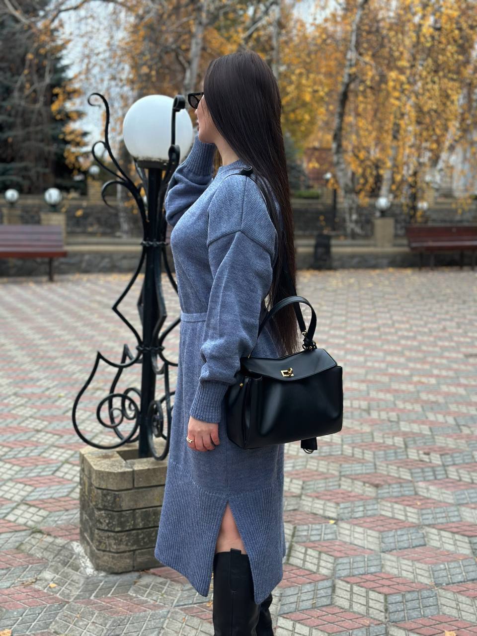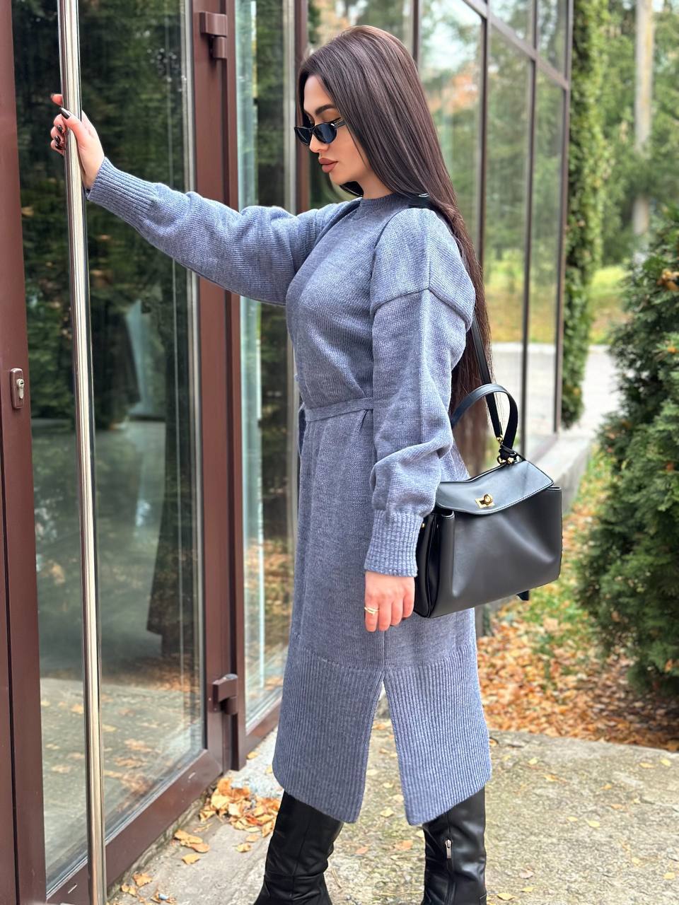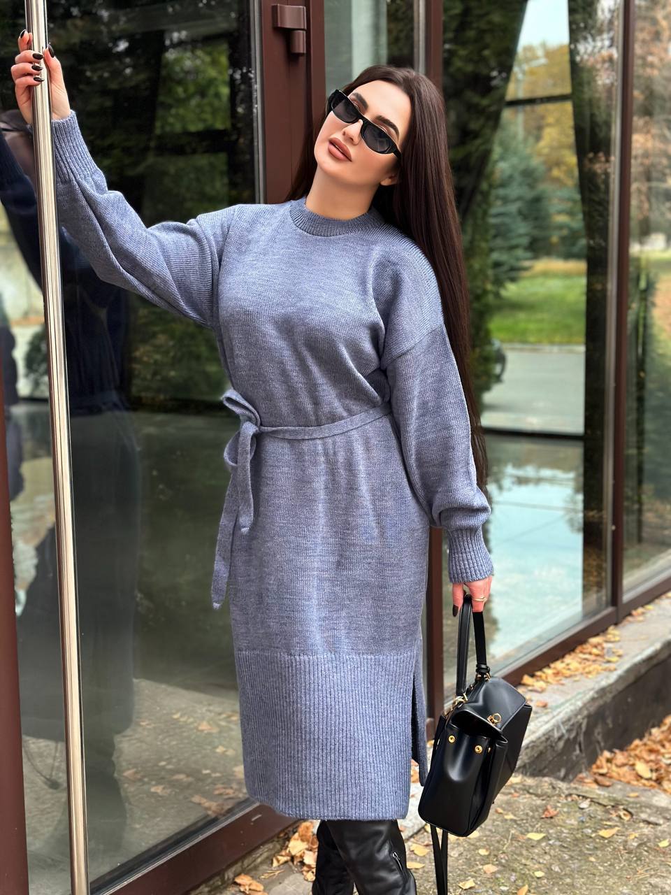 Модель виглядає актуально та легко поєднується з чоботами, черевиками або кросівками. Пояс дозволяє підкреслити талію та створити більш жіночний силует. Довгі манжети на рукавах додають акуратності та забезпечують комфортну посадку. У нижній частині сукні передбачені розрізи з боків, які роблять модель зручнішою у русі та додають образу легкості. Ідеальний варіант для осінньо-зимового гардероба. Сукня практична у догляді: легко переться та швидко сохне, зберігаючи форму та гарний вигляд.
