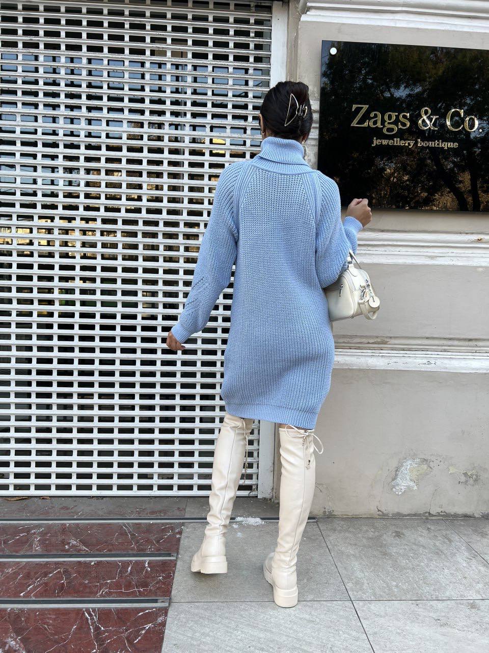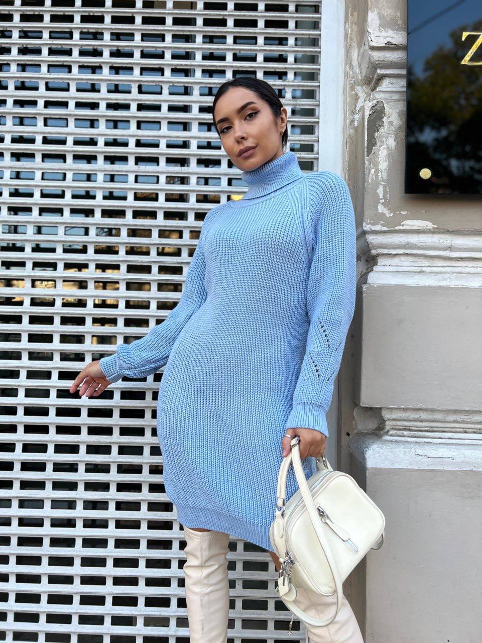 Жіноча в’язана сукня з горлом блакитного кольору 00443