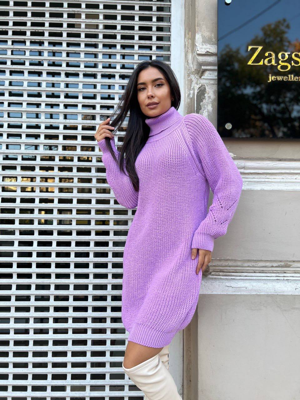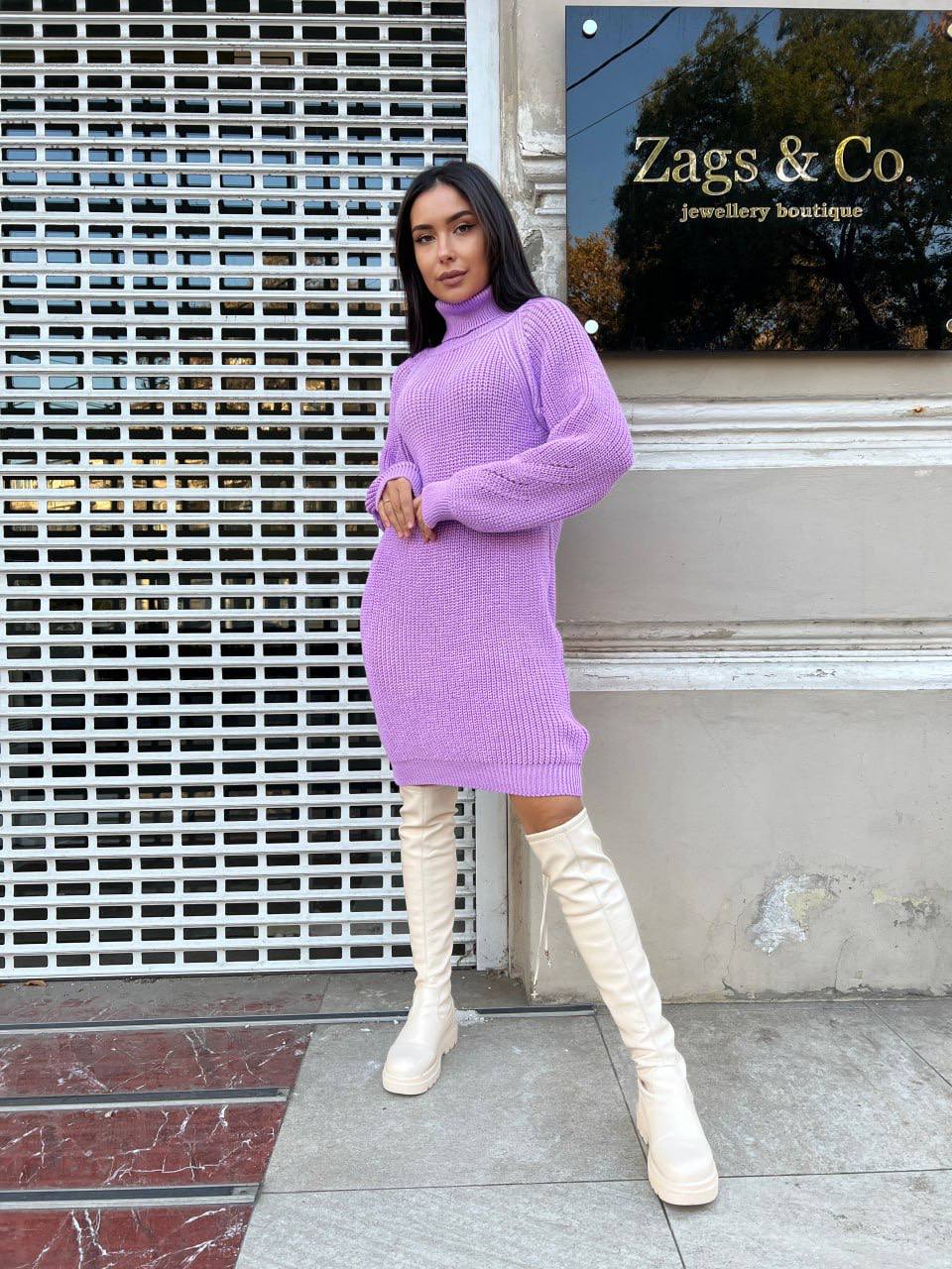 Жіноча в’язана сукня з горлом бузкового кольору 00444