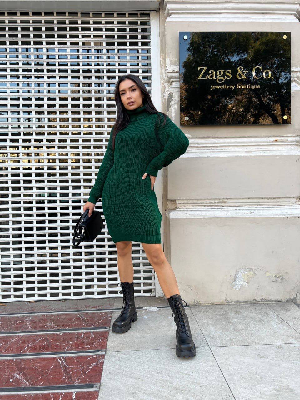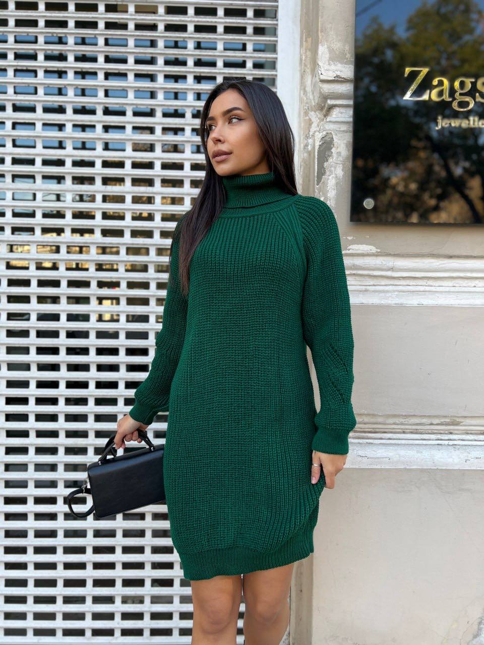 Жіноча в’язана сукня з горлом смарагдового кольору 00447