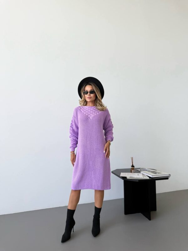 Жіноча в’язана сукня з візерунком бузкового кольору 00564