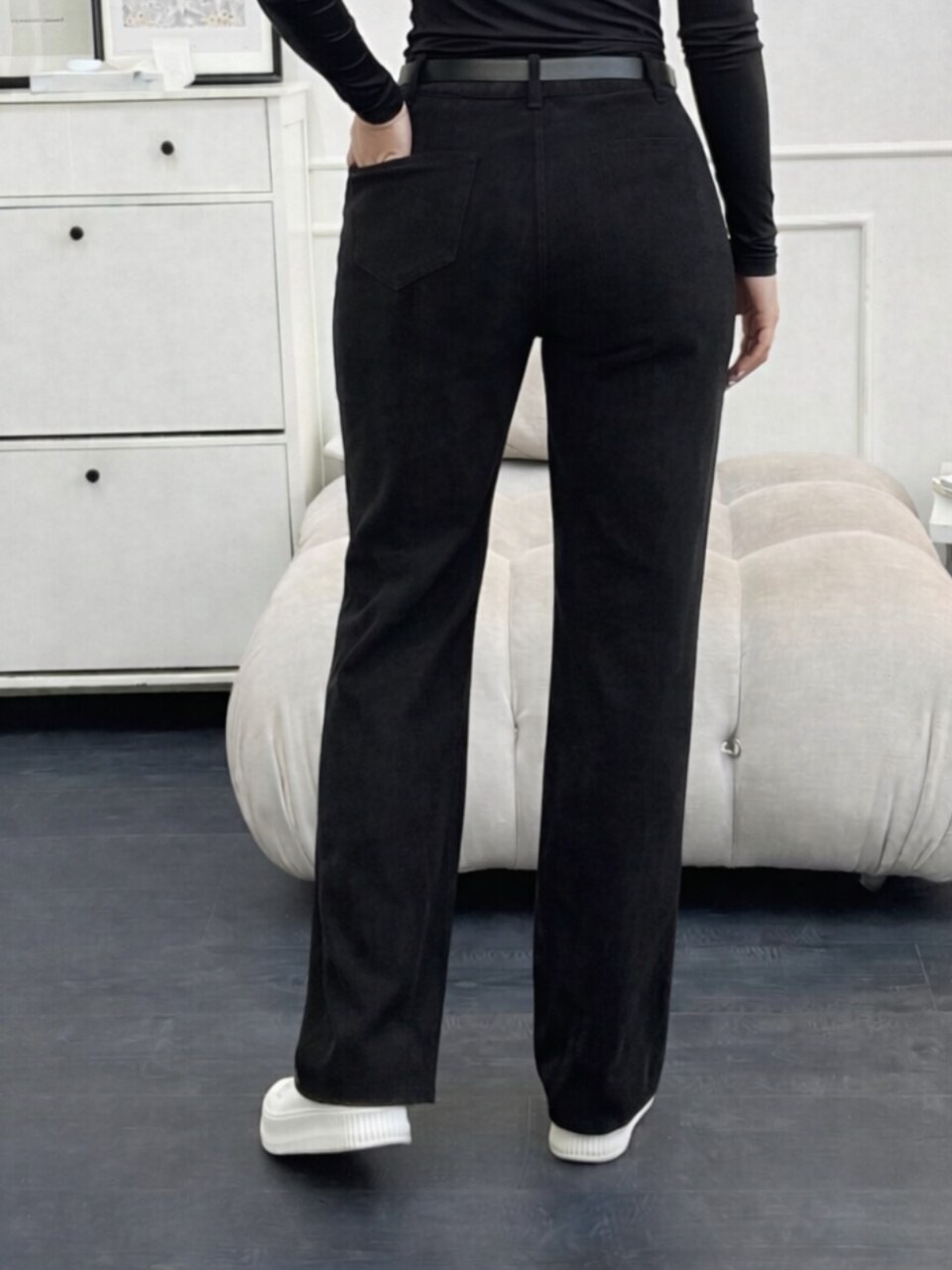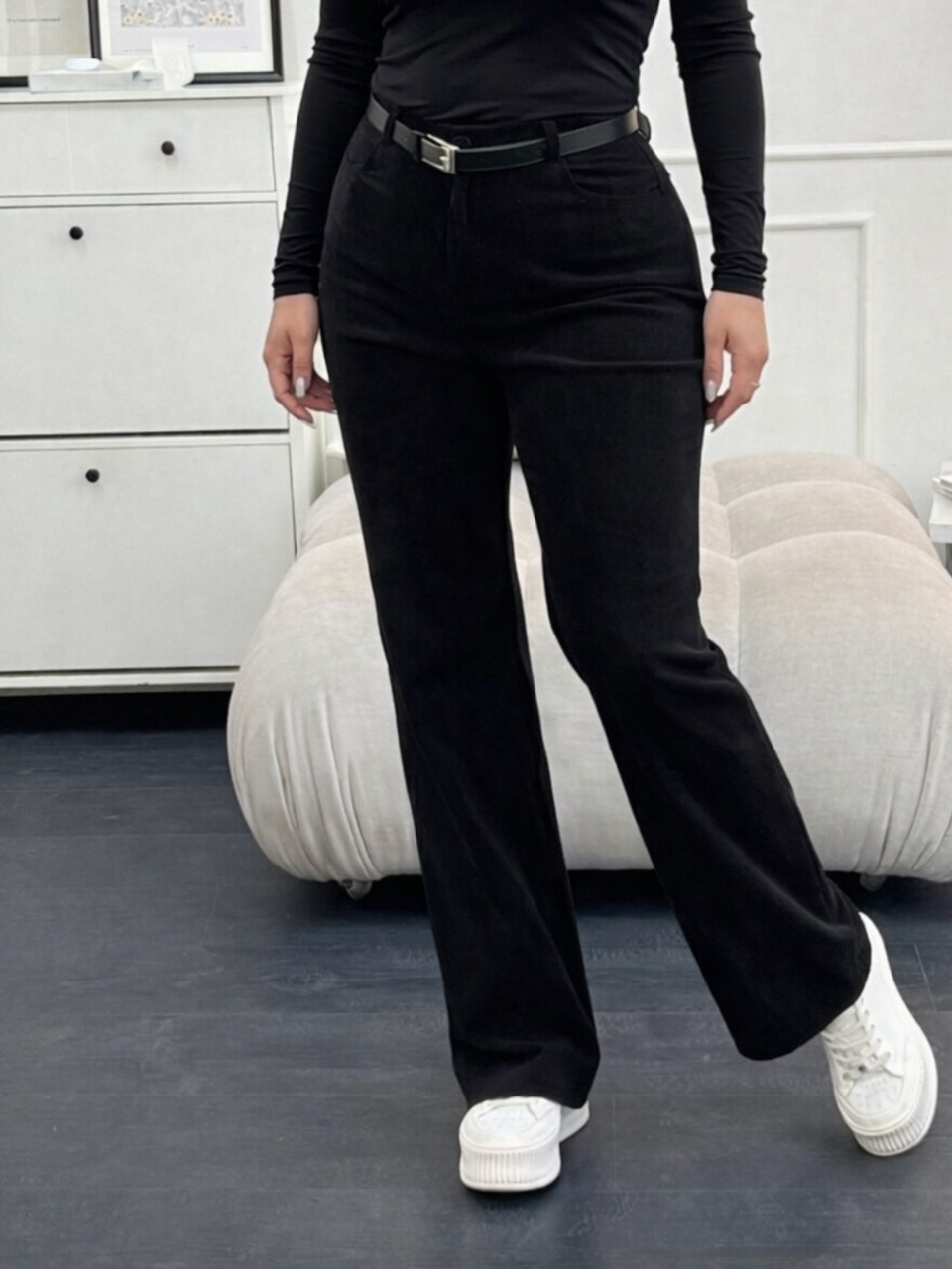 Жіночі вельветові штани чорного кольору — комфортна та практична модель для повсякденного гардероба. М’яка вельветова тканина зі стрейч-ефектом добре тягнеться, красиво сідає по фігурі та забезпечує свободу рухів. Штани виглядають стильно й сучасно, легко поєднуються зі светрами, блузами та жакетами. Ідеальний варіант для осінньо-зимового сезону та прохолодної весни.