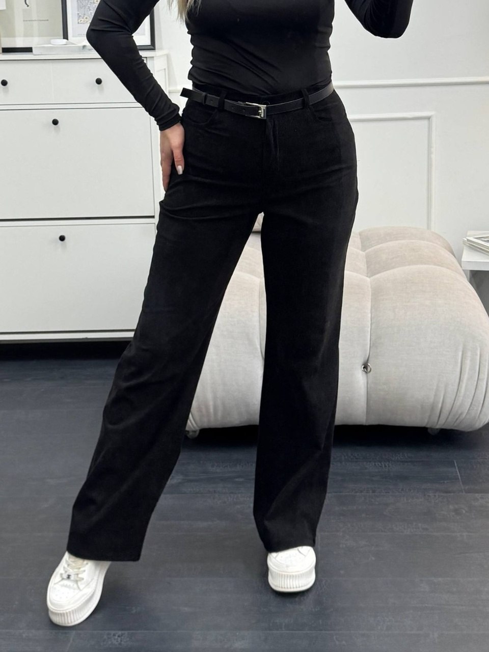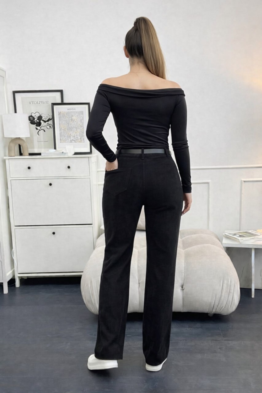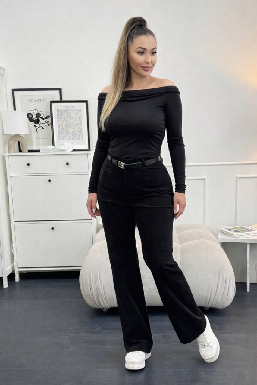 Жіночі вельветові штани чорного кольору 00495