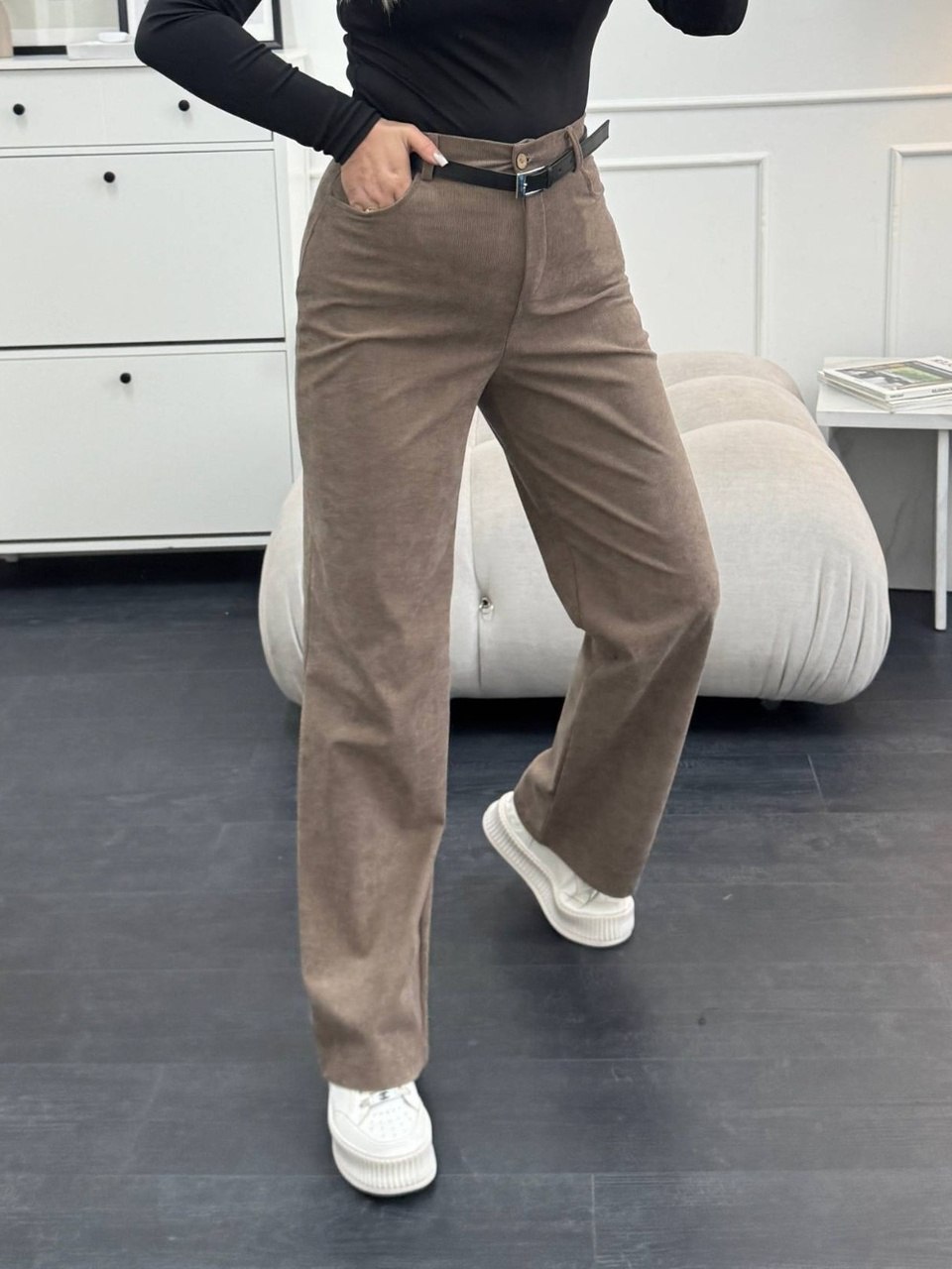 Жіночі вельветові штани кольору мокко 00496