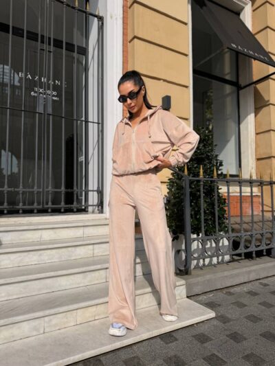 Жіночий велюровий костюм бежевого кольору М504