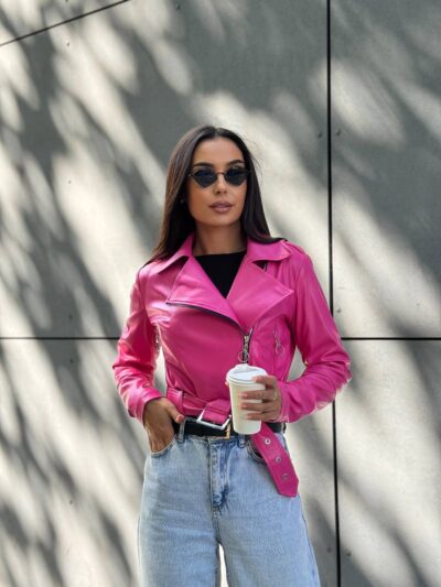 Куртка-косуха жіноча з екошкіри малинова 00297