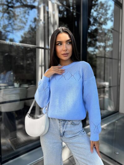 Жіночий в’язаний светр з низьким горлом світло-блакитний 00374