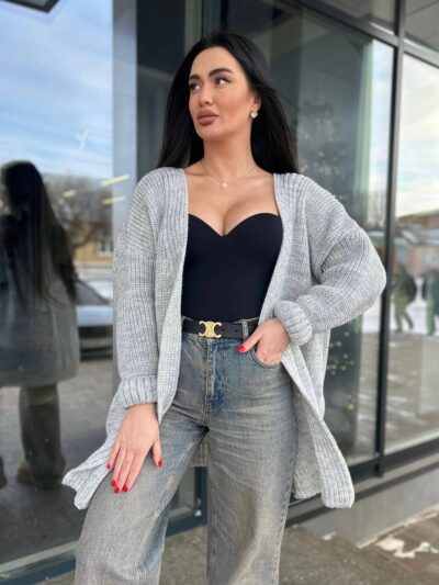 Жіночий в’язаний кардиган оверсайз сірого кольору 00359
