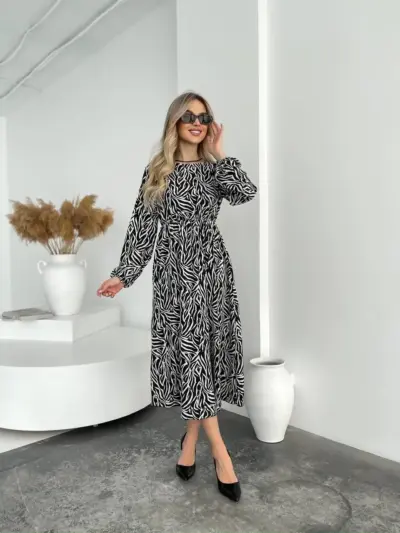Сукня-комбінезон принтована чорні листя на молочному фоні