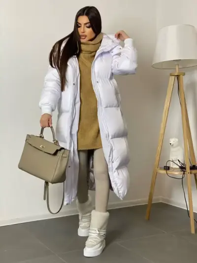 Пуховик жіночий яскраво-рожевий довгий 120см