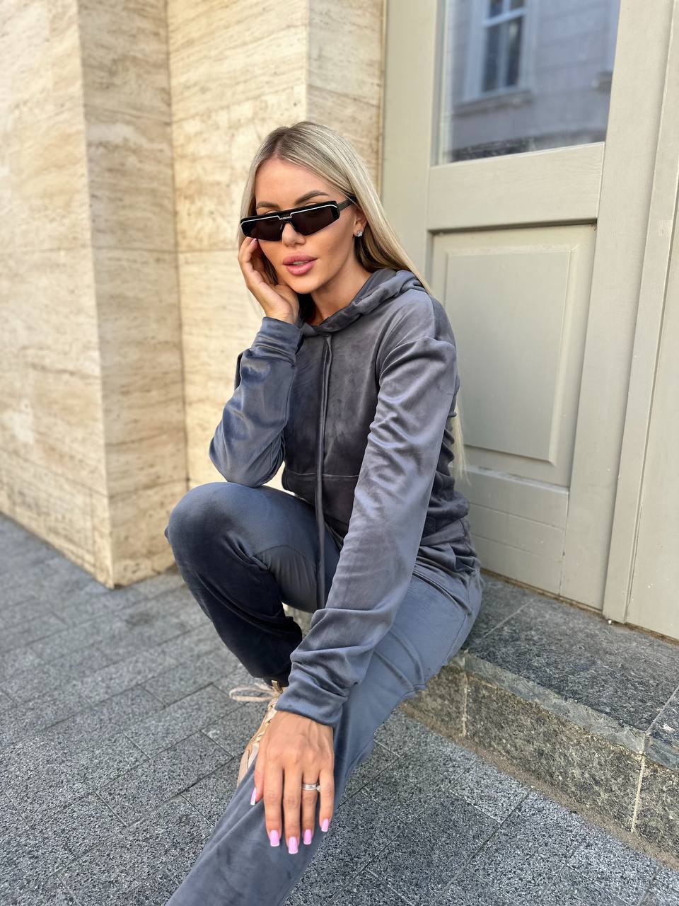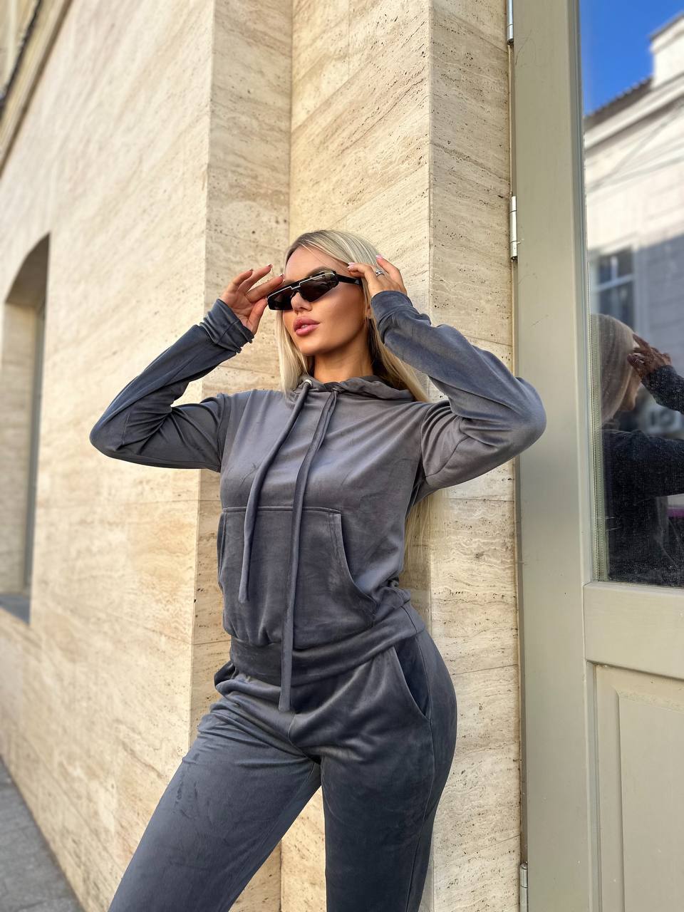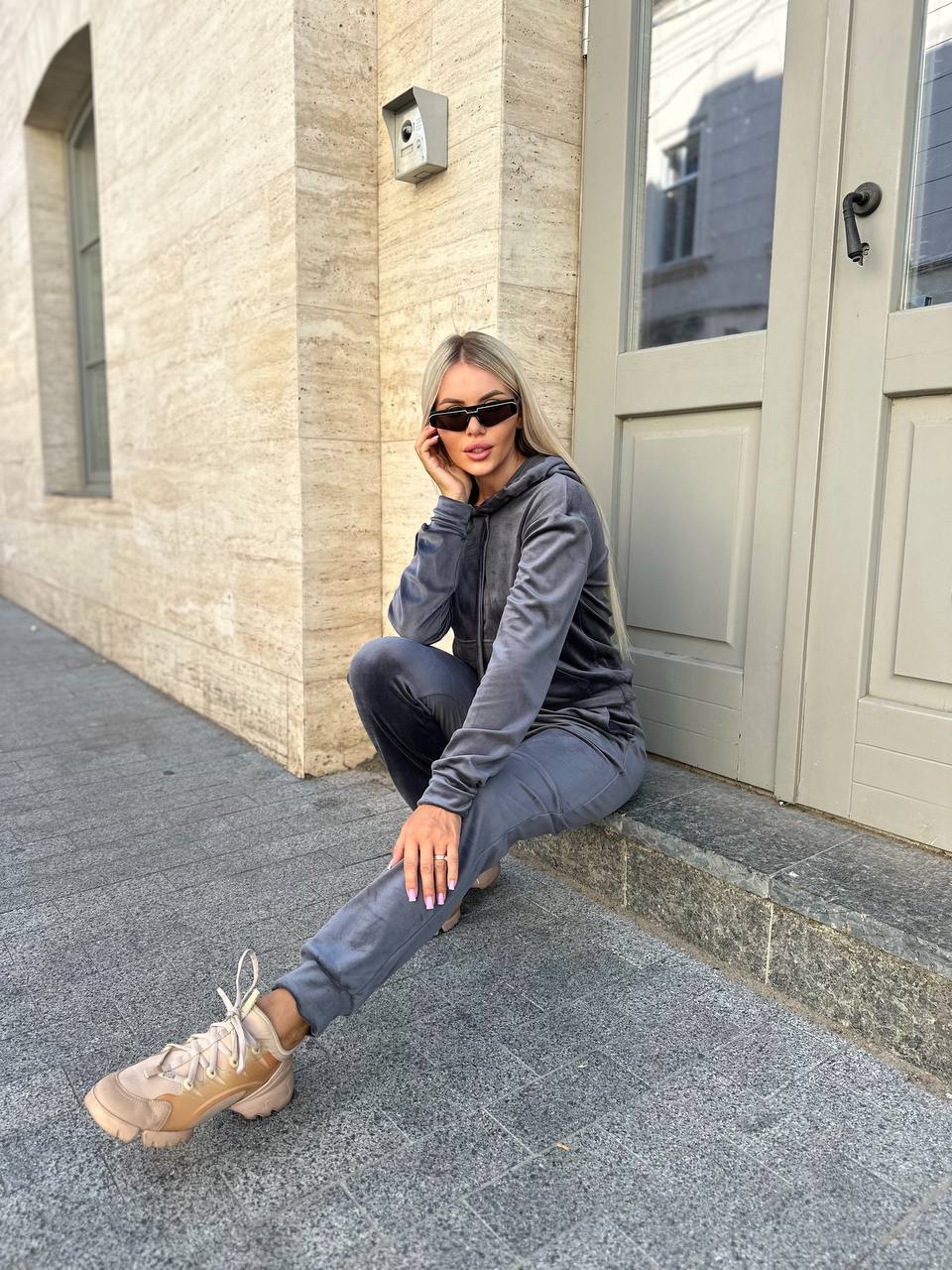 Жіночій спортивний велюровий костюм кольору графіт 00509