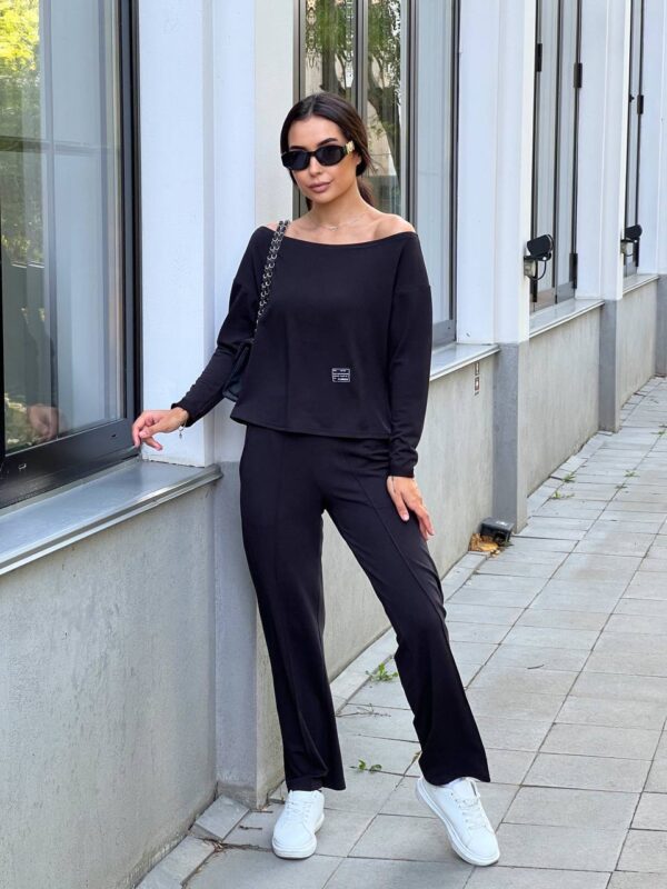Жіночий костюм зі спущеним плечем чорного кольору 00501
