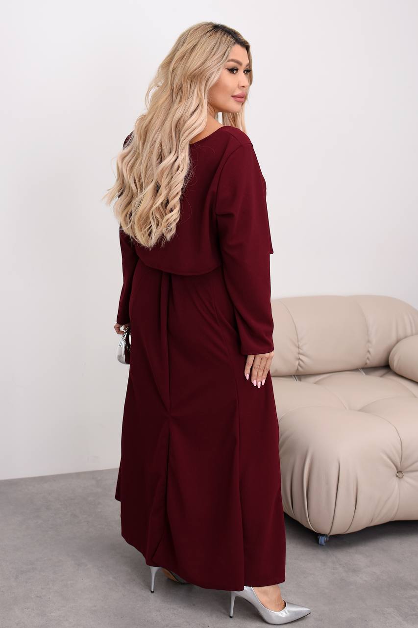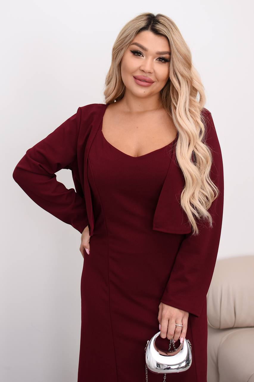 Жіночий костюм сукня з болеро бордового кольору 00459