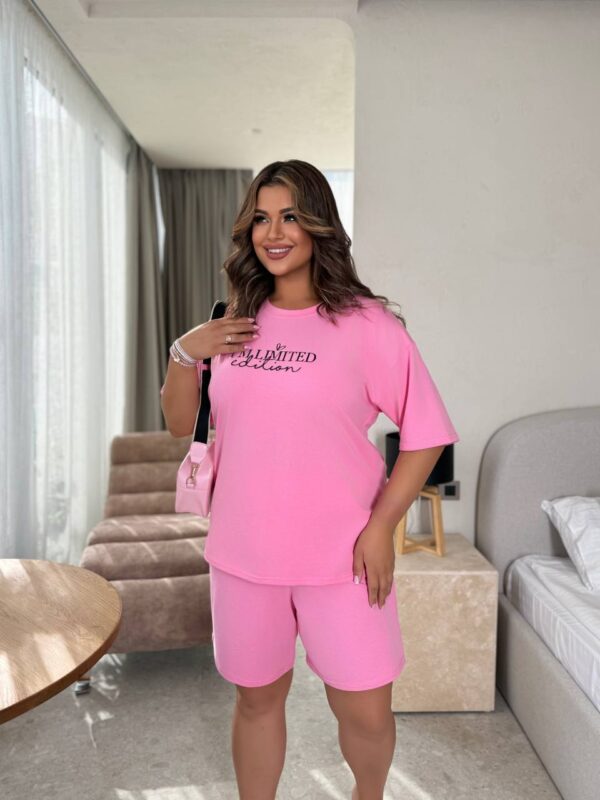 Жіночий костюм з бавовни з шортами рожевого кольору