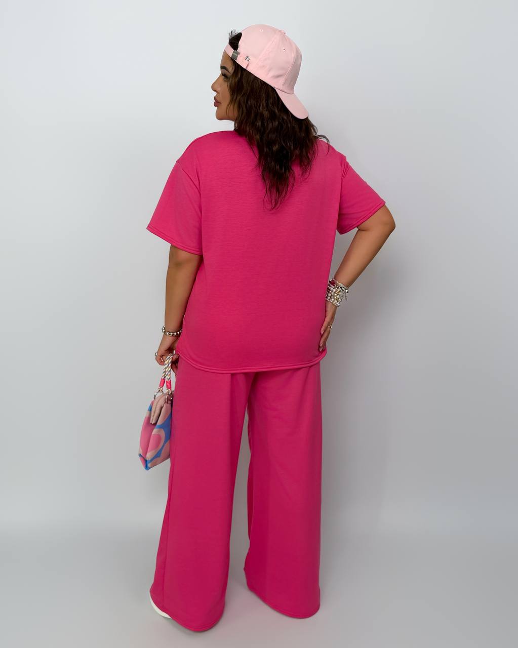 Додати до відстеження цінЖіночий костюм з двохнитки рожевого кольору – який ідеально підходить для повсякденного носіння, прогулянок або відпочинку. Модель виконана з тканини двохнитка — легкої, приємної до тіла та дихаючої, що забезпечує комфорт навіть у теплу пору року.