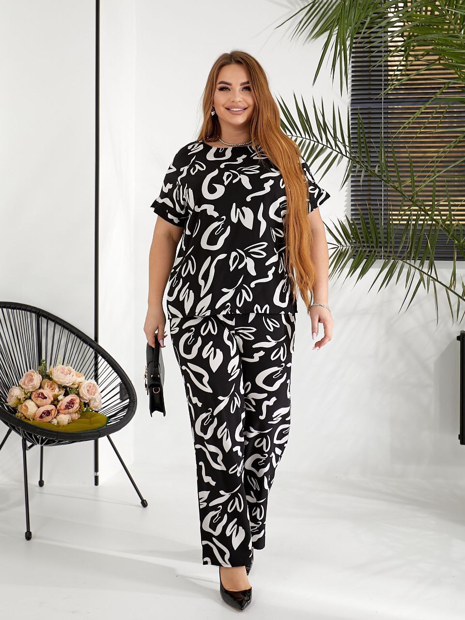 Жіночий костюм з принтом чорного кольору 00632